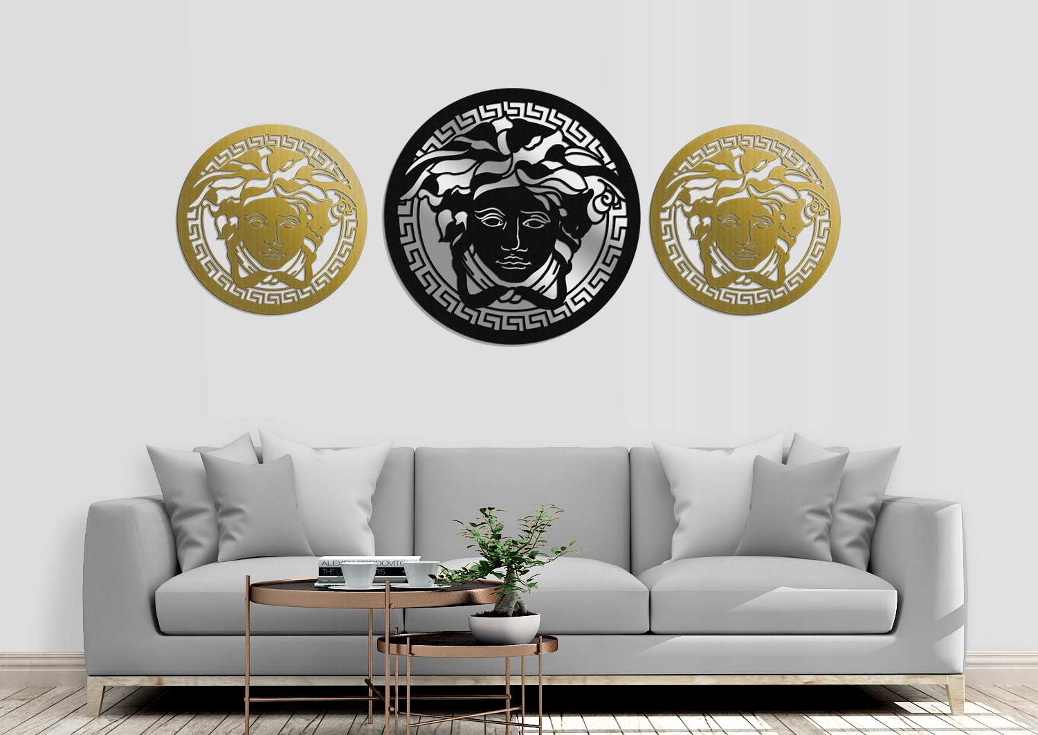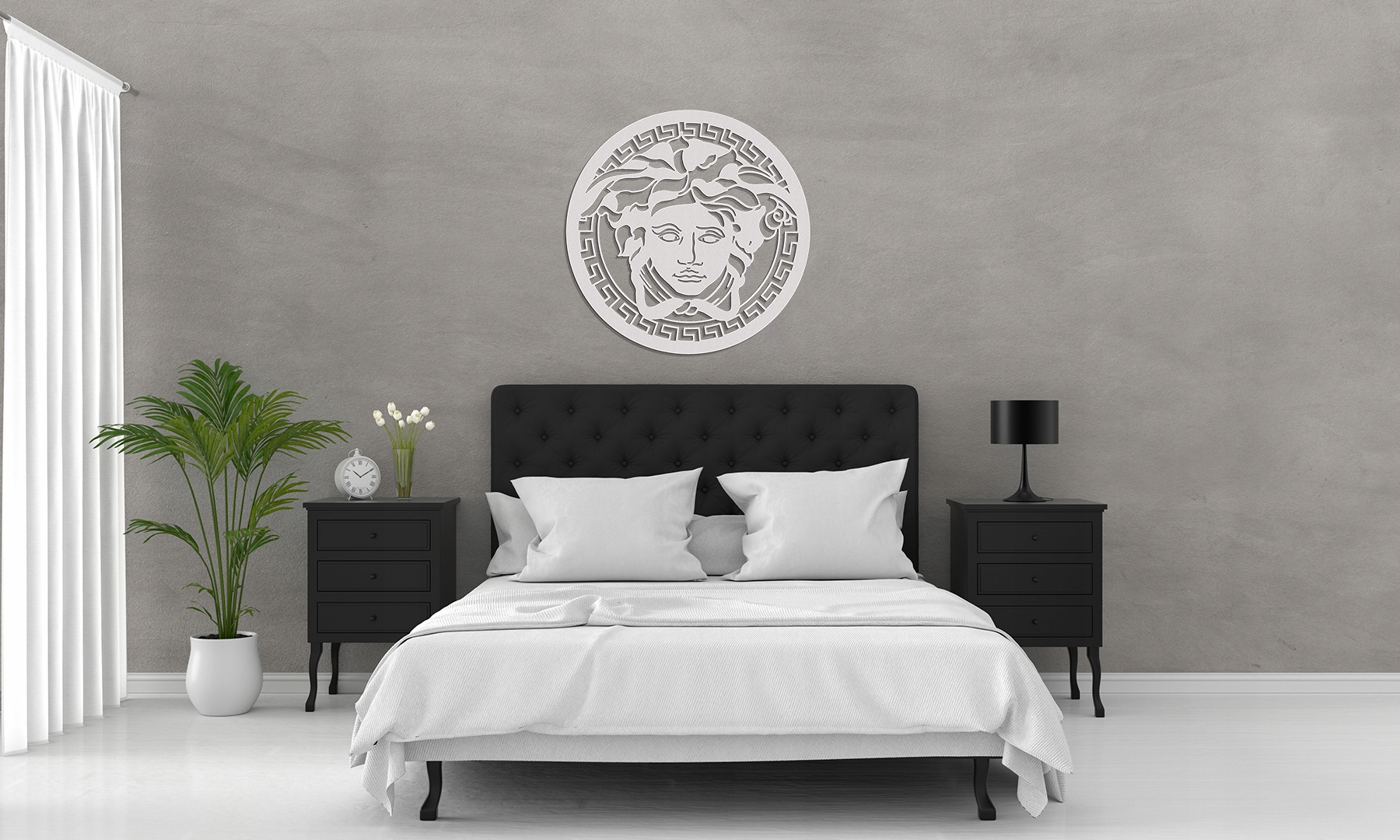 Декоративна ажурна графіка з мотивом Медузи – наймолодшої з трьох Горгон. Ось уже 40 років він є логотипом ікони стилю – італійського модного будинку Versace. Стильна прикраса та незвичайна прикраса вітальні або оригінальна ідея подарунка близькій людині;)