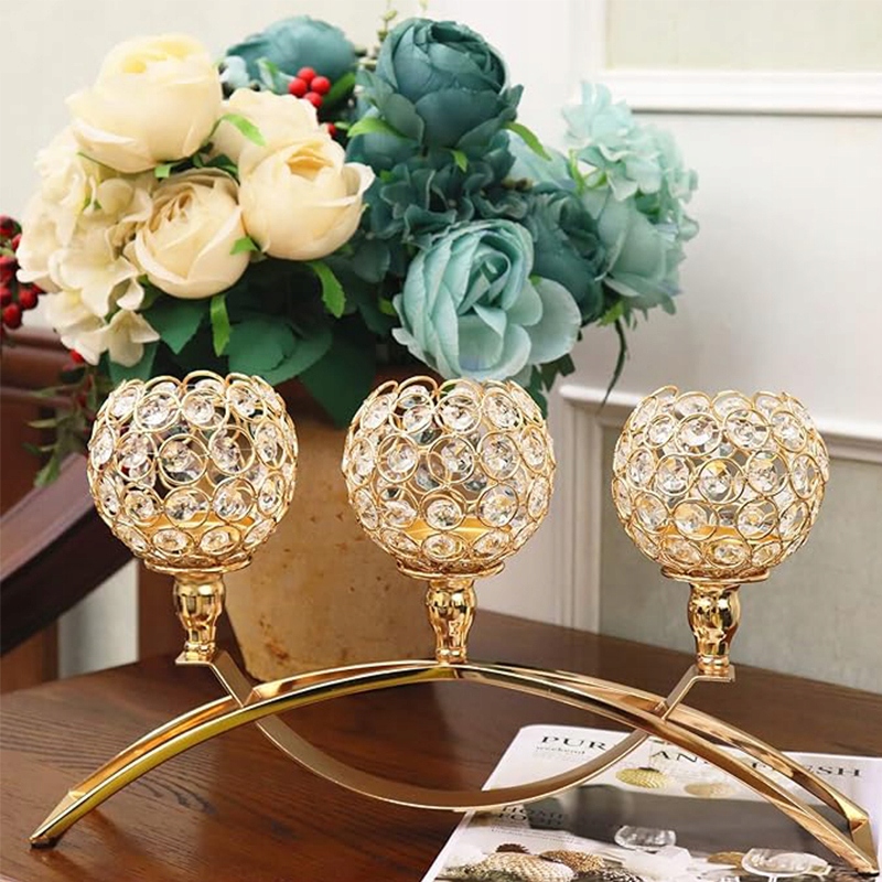 Трьохстороння європейська класична арка із залізною кришталевою кулею Романтичний підсвічник при свічках (золото)