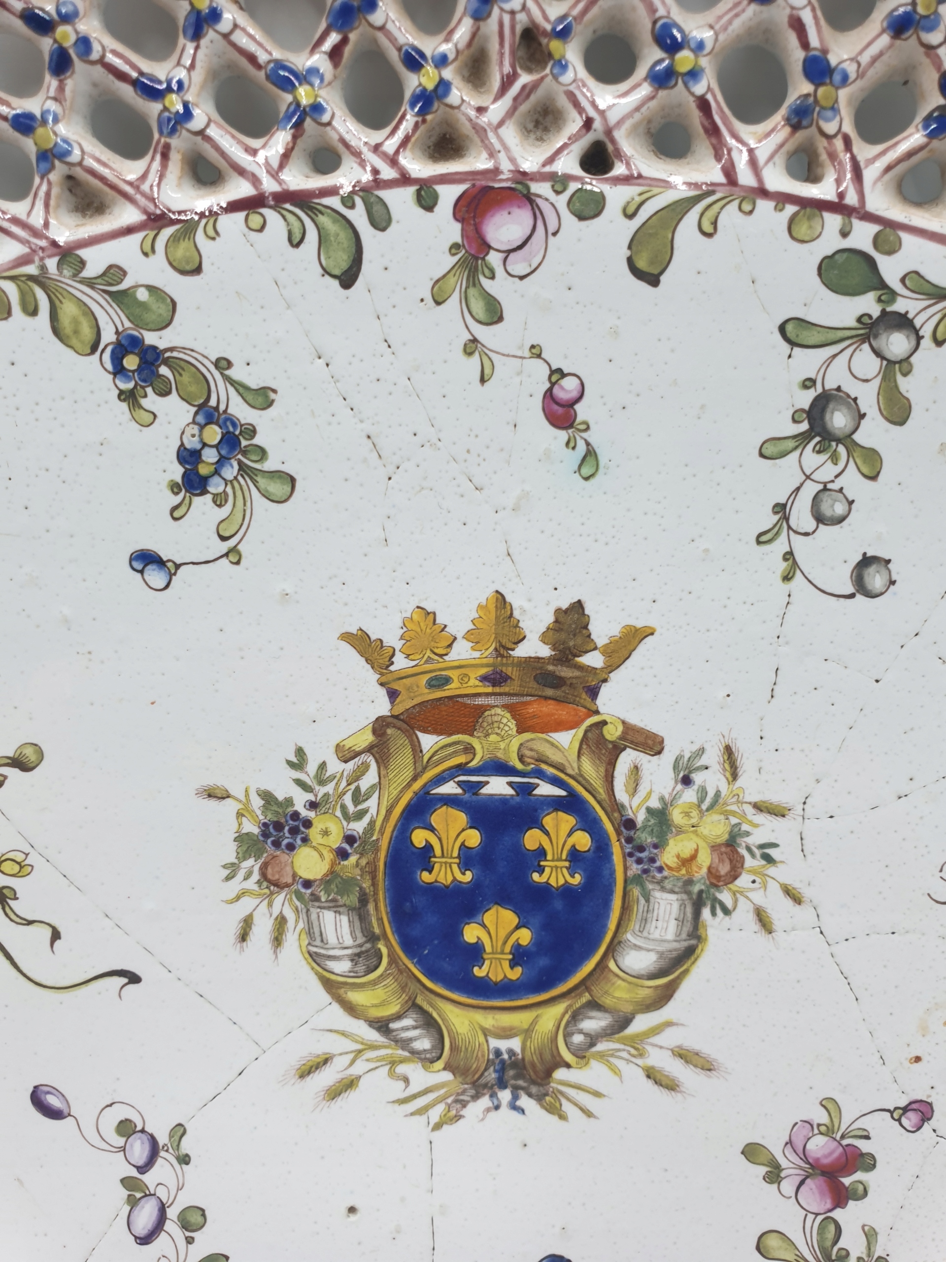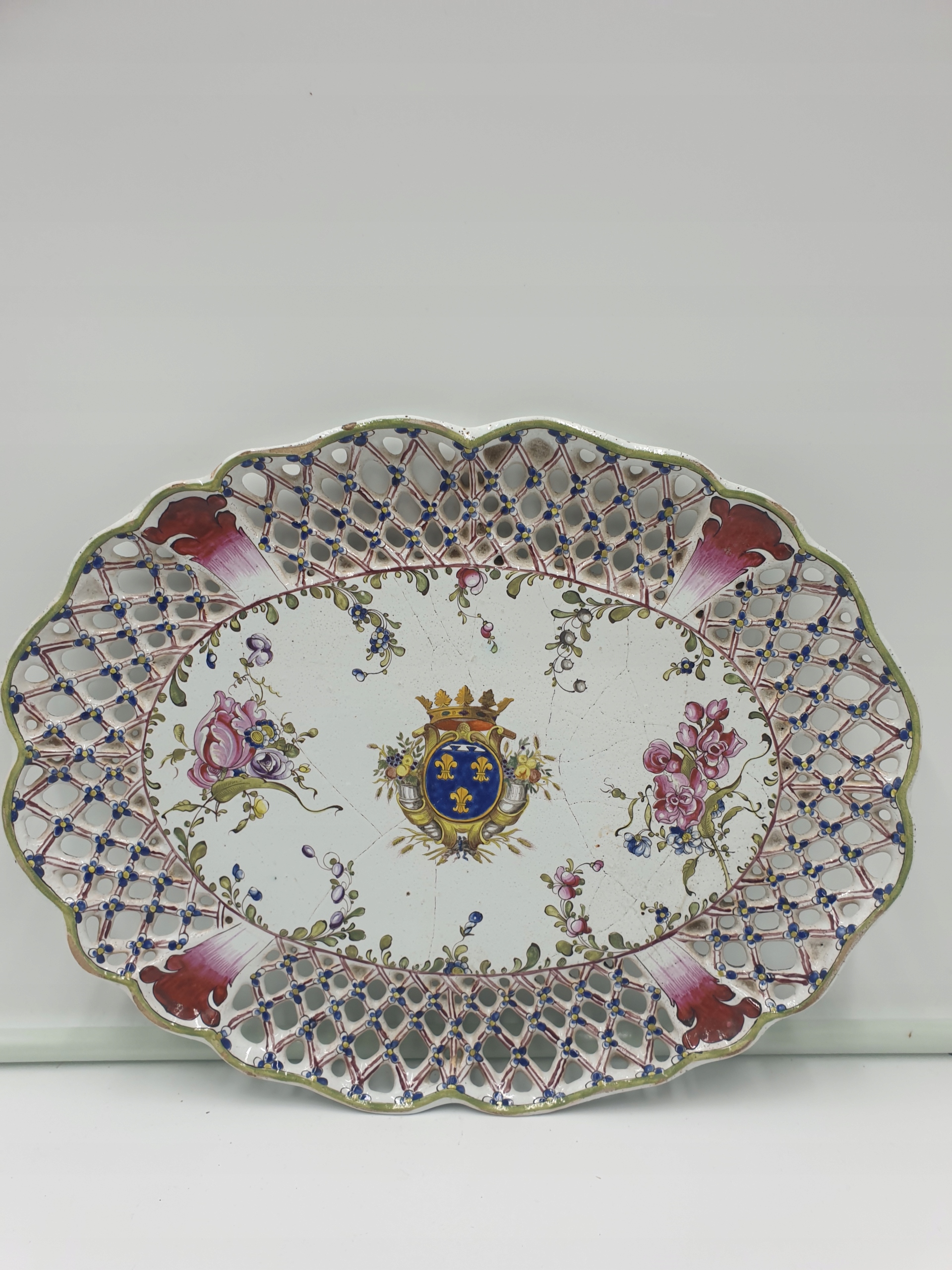 Ажурна порцелянова тарілка, розписана вручну королівськими ліліями