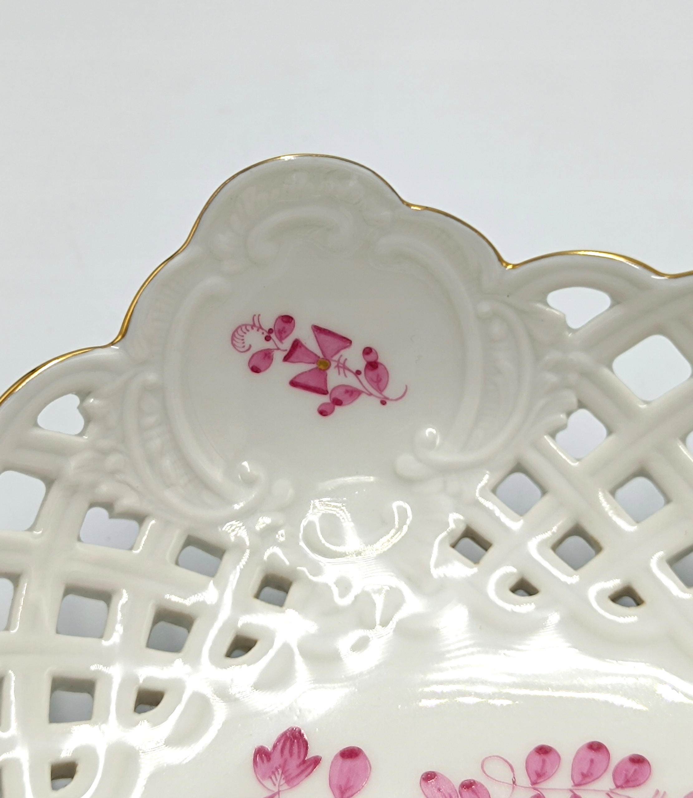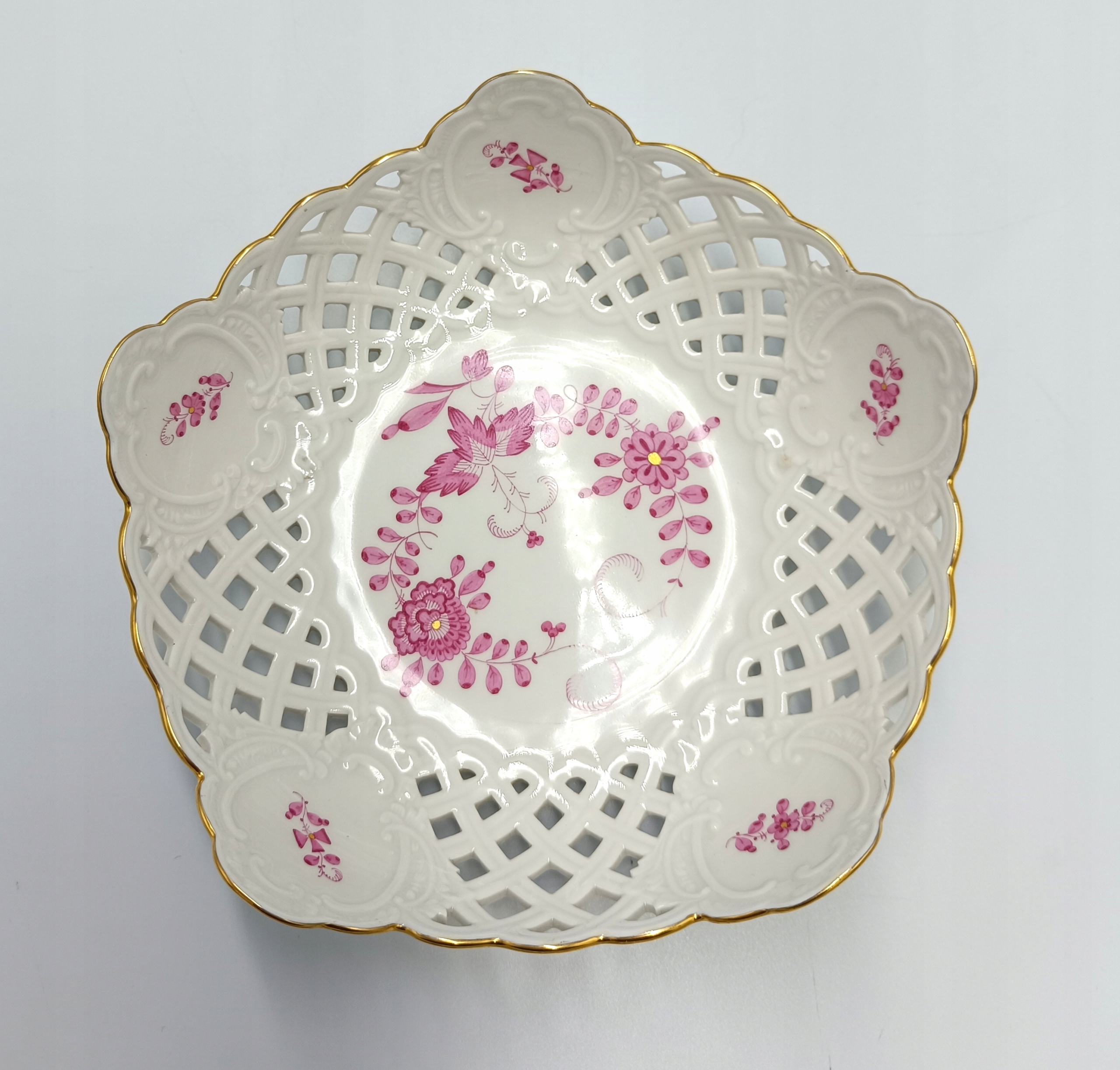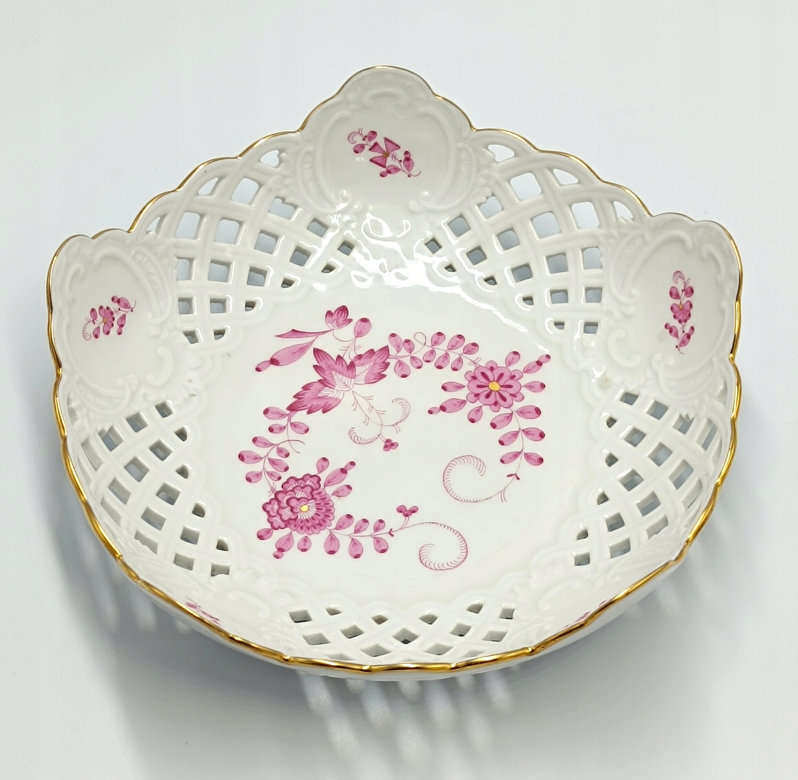 Представляємо гарну маленьку ажурну підставку для тортів виробництва всесвітньо відомої німецької фабрики MIŚNIA (MEISSEN) з колекції PURPLE INDIAN FLOWER.