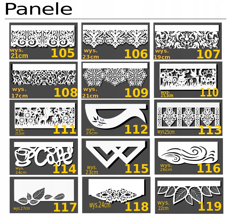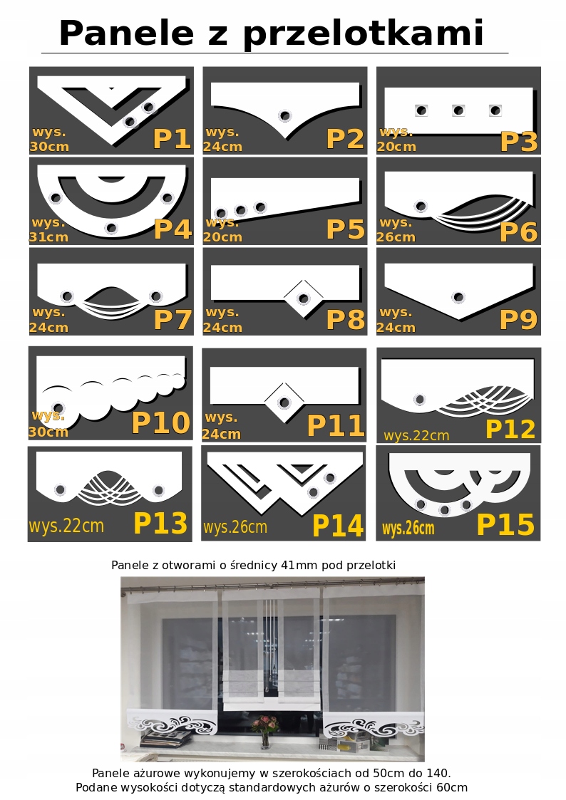 Як провідний виробник, ми пропонуємо готові ажурні ямки для обробки віконних полотен. Панелі виготовлені з високоякісного матеріалу лазерним методом, що дозволяє отримати ідеальну кромку без потертостей. Ажур складається з 5 шарів з посиленням, що забезпечує ідеальне розташування панелей. Нехай вас не обманюють панелі, випалені з одного товстого шару, вони не будуть такими жорсткими. Секрет криється в жорсткості ажуру. У комплект панелі входить складка для кріплення на штору. Чудове доповнення для обробки ширм, штор і жалюзі. Це високоякісний продукт, який можна придбати в магазинах штор.
