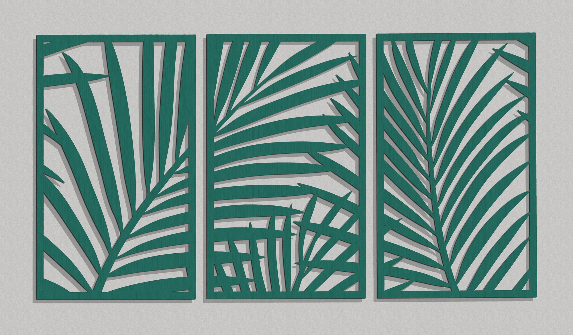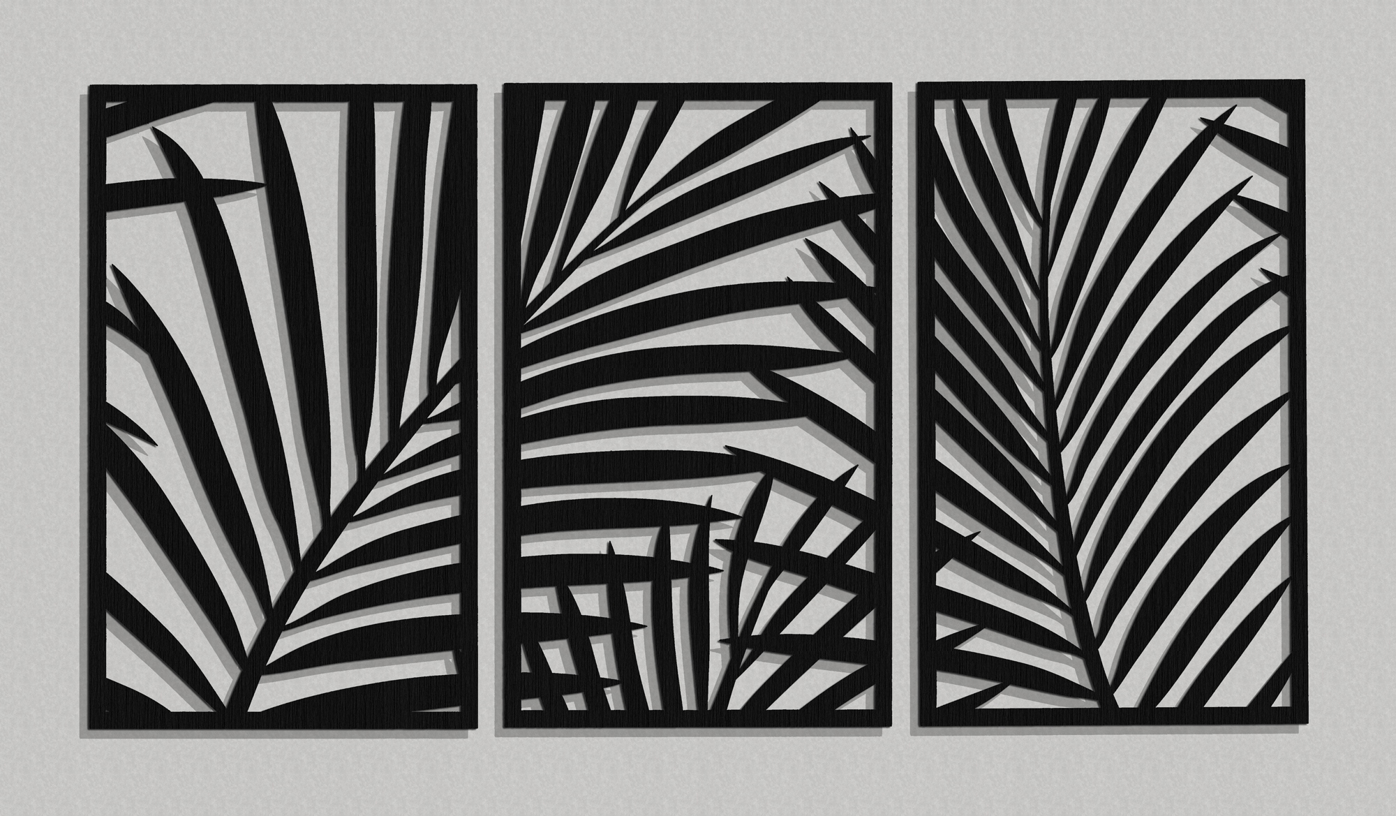 3D ажурний настінний декор - триптих з мотивом пальми. Стильна прикраса, яка є унікальним елементом аранжування. Тропічна атмосфера у вашому інтер'єрі;)