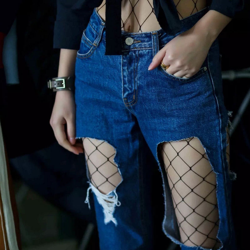 АЖУРНІ КОЛГОТКИ ДЖИНСИ ВЕЛИКІ СІТКИ ЧОРНИЙ