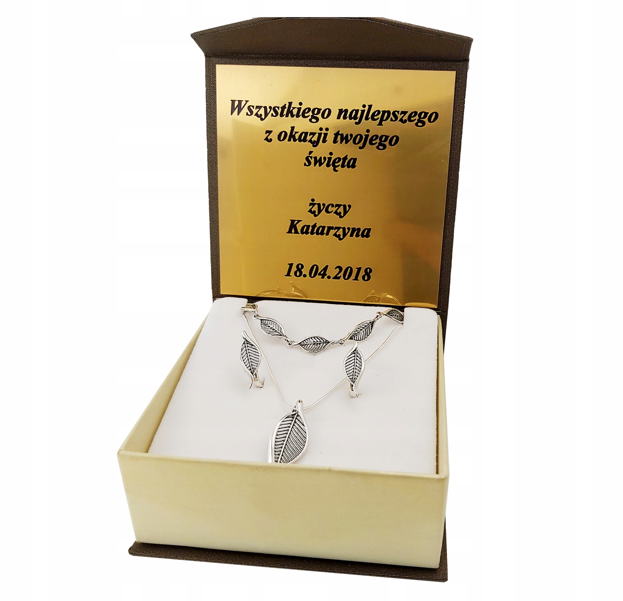 Елегантні та стильні ювелірні вироби зі срібла 925 проби з увагою до найдрібніших деталей — ідеальний спосіб підкреслити свій стиль на роботу, важливу зустріч або побачення з коханою людиною. Витончена форма листя, збагачена гладкими, блискучими та ажурними текстурами, виглядає феноменально. Набір, що складається з кольє, браслета та сережок, упакований в коробку з іменним написом.