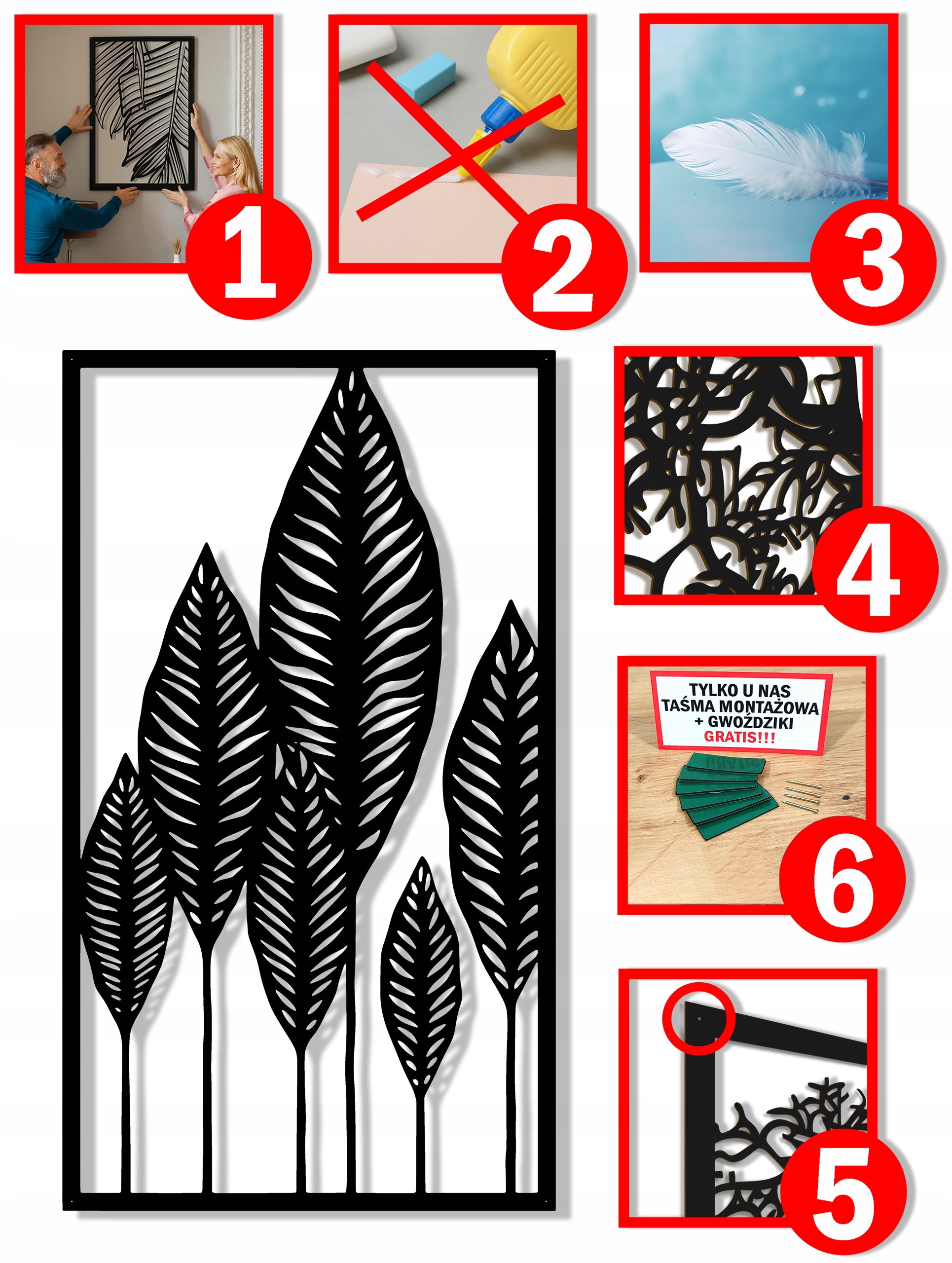 - У набір входить набір самоклеючих кріпильних стрічок і цвяхів (2 способи кріплення на вибір!!!), завдяки яким ви можете повісити картину надлегко li>
