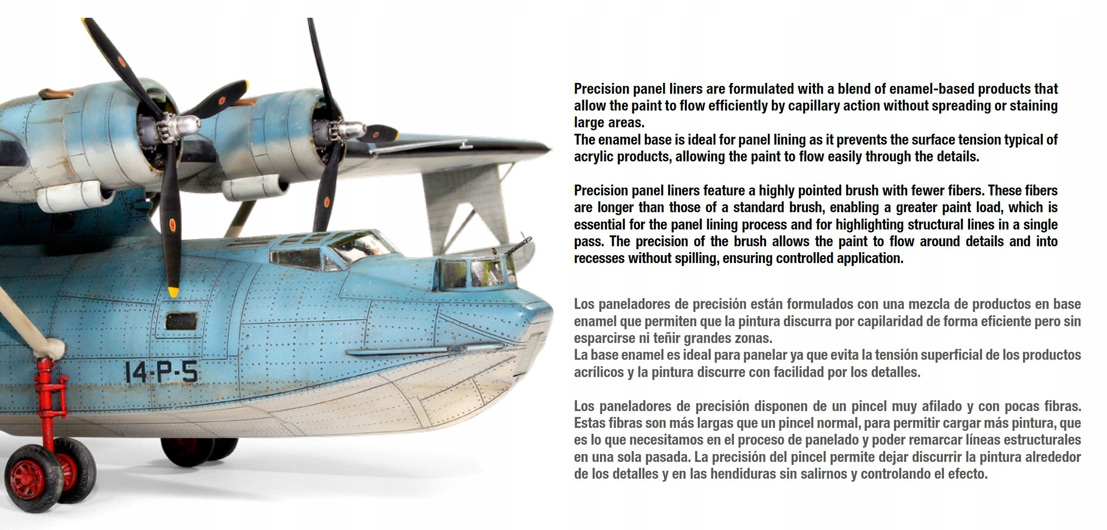 AK Interactive Precision Panel Liners — це професійні емальовані вкладиші, створені спеціально для підсвічування панелей, будівельних ліній і деталей на пластикових моделях. Формула на основі емалі гарантує чудовий капілярний потік фарби, без розливання та небажаного фарбування великих поверхонь. Завдяки цьому облицювання панелей стає швидким, чистим і надзвичайно точним.