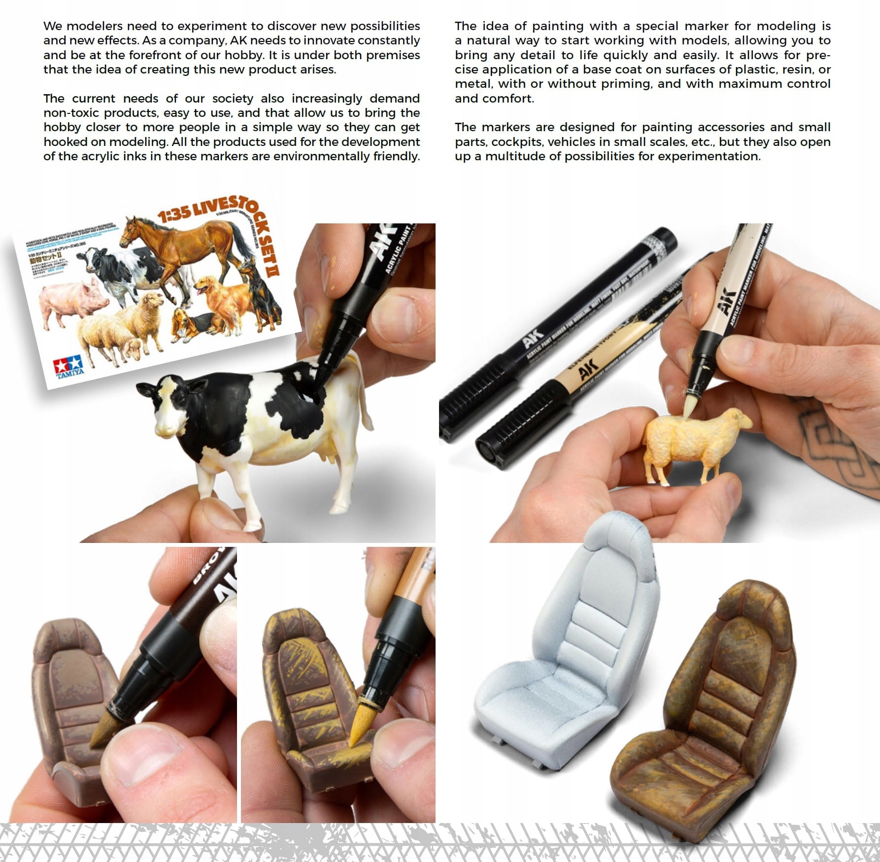 Інтерактивні маркери AK Real Colours ідеально підходять для нанесення основного кольору на невеликі моделі або для фарбування камуфляжних аксесуарів чистим, зручним і точним способом.