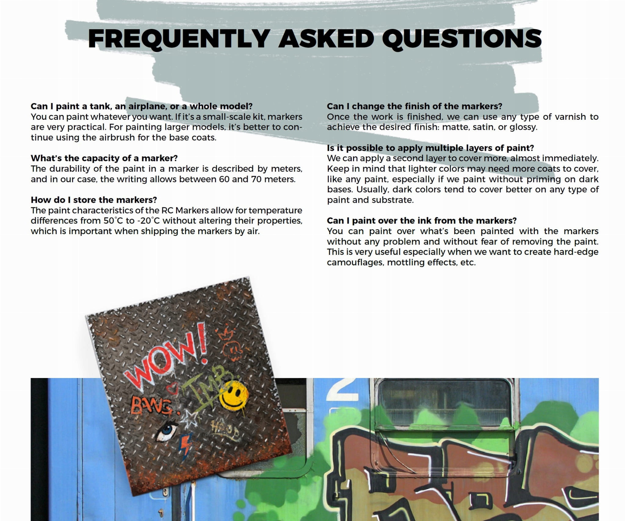 Ці маркери мають чудову адгезію до пластикових, смоляних, металевих і дерев’яних поверхонь. Кольори водостійкі та термостійкі. Їх можна наносити шарами, як і будь-яку іншу модельну фарбу. Високий ступінь покриття. Вони не розмазуються. Вони дозволяють наносити подальшу атмосферну обробку будь-яким продуктом, не боячись видалити фарбу.