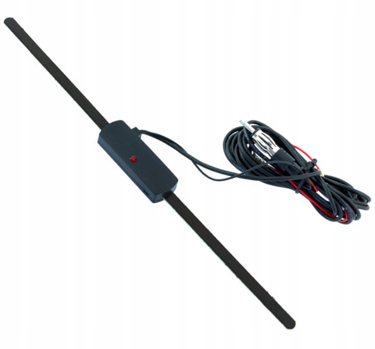 Внутрішня AM-FM радіо антена для автомобіля. Пристрій має довгий кабель для легкої установки. Зазвичай він живиться 12 В від прикурювача автомобіля.