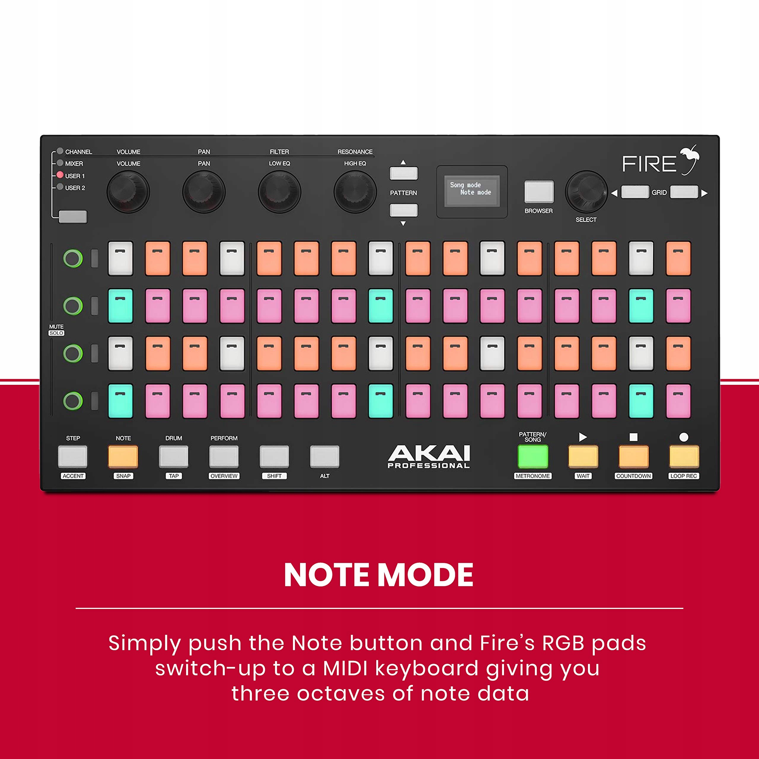 Akai Fire - професійний USB -контролер MIDI для студії FL, що дозволяє швидко програмувати проекти та записувати в режимі продуктивності. Революційний потік роботи забезпечується завдяки 64 динамічному плану RGB, а перетворення пожежі в Beat-Maker дозволений MPC Style 16 PAD в барабанному режимі. Контролер має 4 лавки, що дозволяє призначенню сенсорного контролера/MIDI Enkoder для управління сумішшю, каналом та призначенням користувачем.