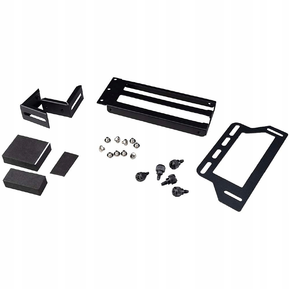 - Суцільне металеве кріплення для графічного процесора – високоякісне чорне анодоване металеве кріплення відображає графічний процесор вертикально, сумісне з корпусом із середньою або повною колонкою.