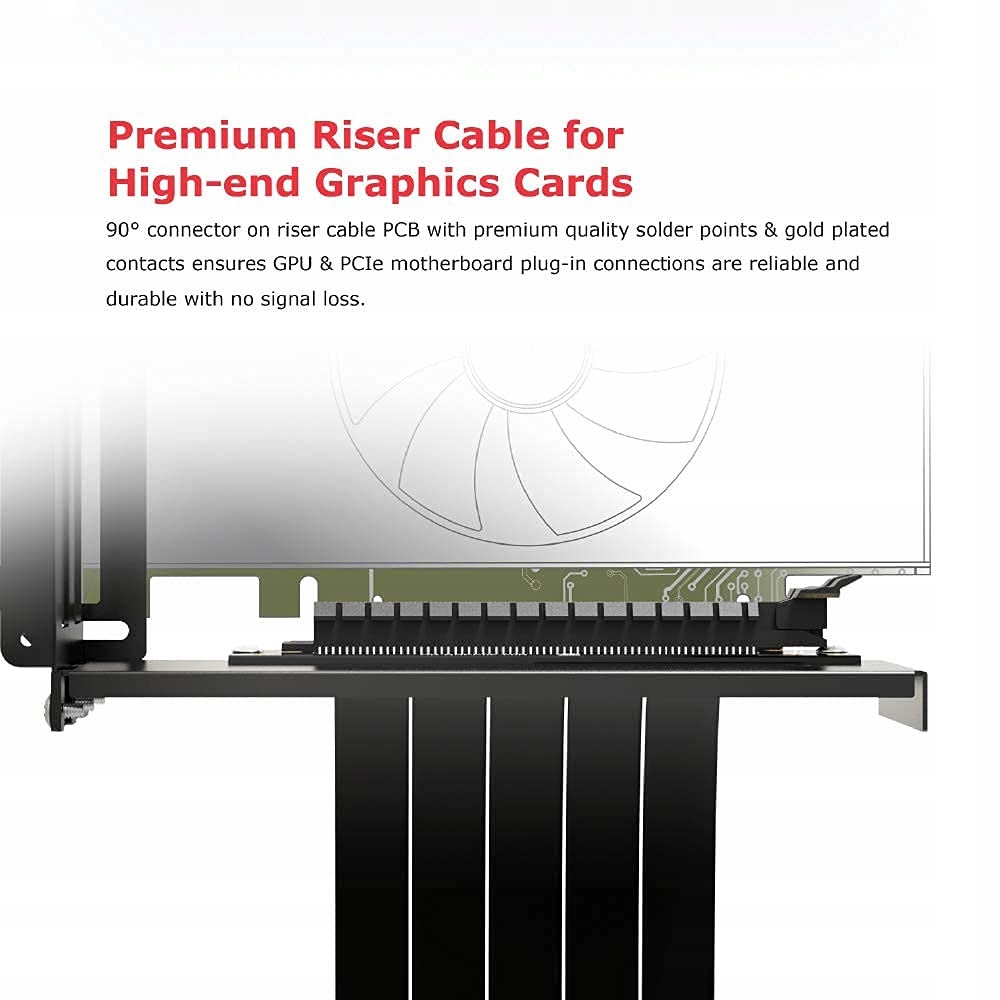 - марковані точки символів: Міцне металеве кріплення графічного процесора – високоякісне кріплення з анодованого чорного металу відображає графічний процесор вертикально, узгоджене з шасі з середньою або повною колонкою, висока пропускна здатність – повна пропускна здатність PCIe 3.0 x 16 підтримує навіть найвибагливіші ігрові системи. найкраще екранування електромагнітних перешкод – екранування електромагнітних перешкод усуває перешкоди під час передачі, щоб забезпечити стабільне з'єднання та максимальна продуктивність. Кабель Premium Riser - роз'єм PCIe має точки пайки найвищої якості та позолочені контакти для цілісності сигналу та стійкості до корозії. Гнучка конструкція кабелю - надтонка 5-жильна стяжна стрічка зберігає гнучкість і забезпечує чистий вигляд для легкого управління кабелем. Чорний анодований для непомітної естетики.