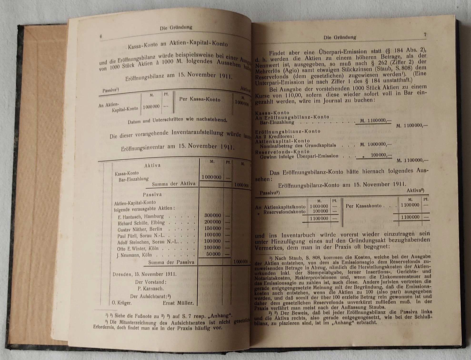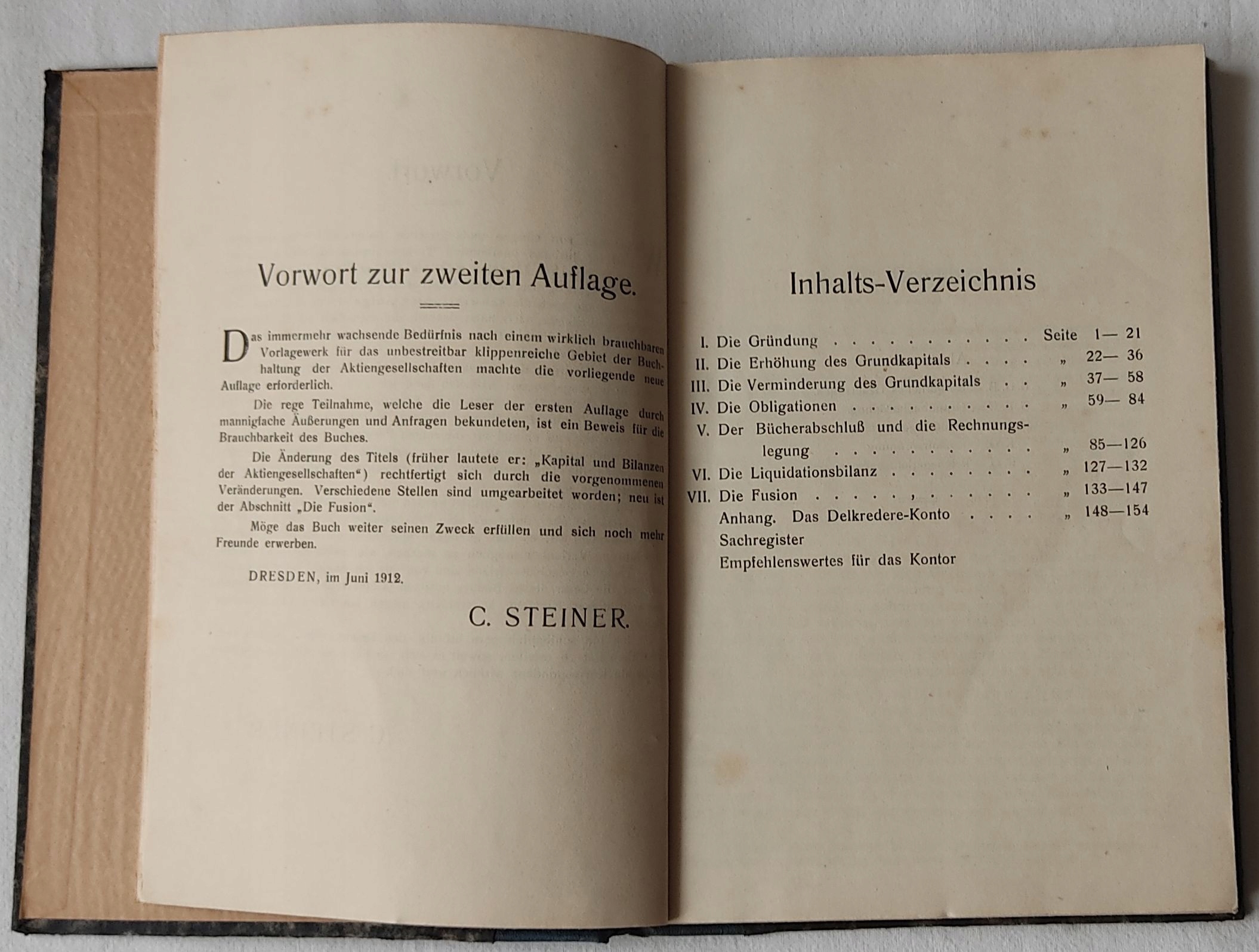 Gründung; Erhöhung und Verminderung des Grundkapitals; Obligationen; Bücher-abschluß und Rechnungslegung; Ліквідаціїбіланц; Fusion; Delkredere-Account.