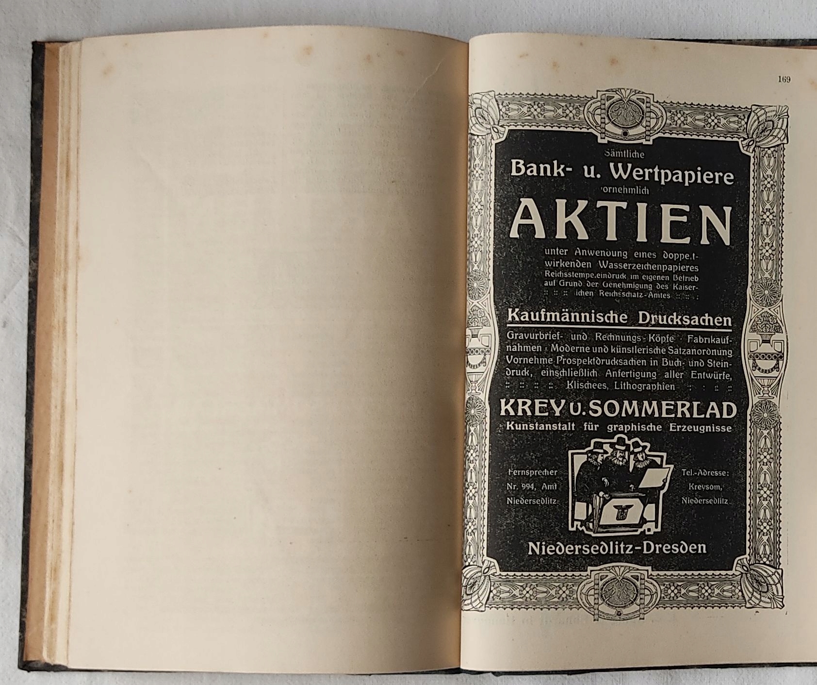 Сторінки VIII + 189, надруковано німецькою мовою, зі сторінки 169 реклами, додаток, предметний покажчик,