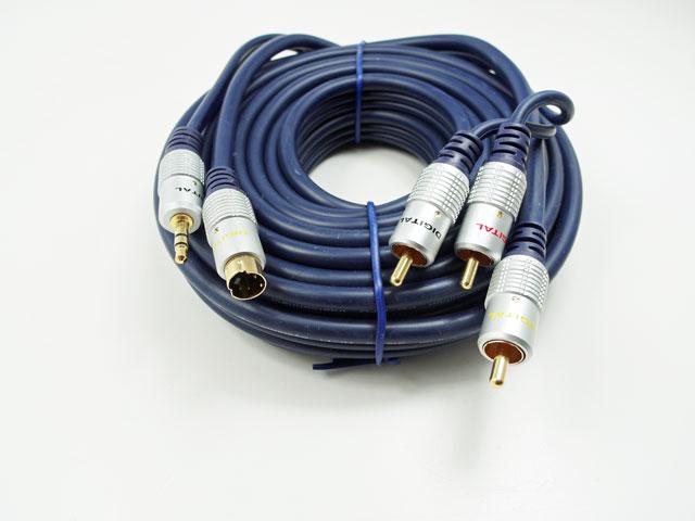 Кабель із 3 штекерами RCA (chinch) до штекера S-Video (SVHS) + 3,5 мм стерео міні-штекер.