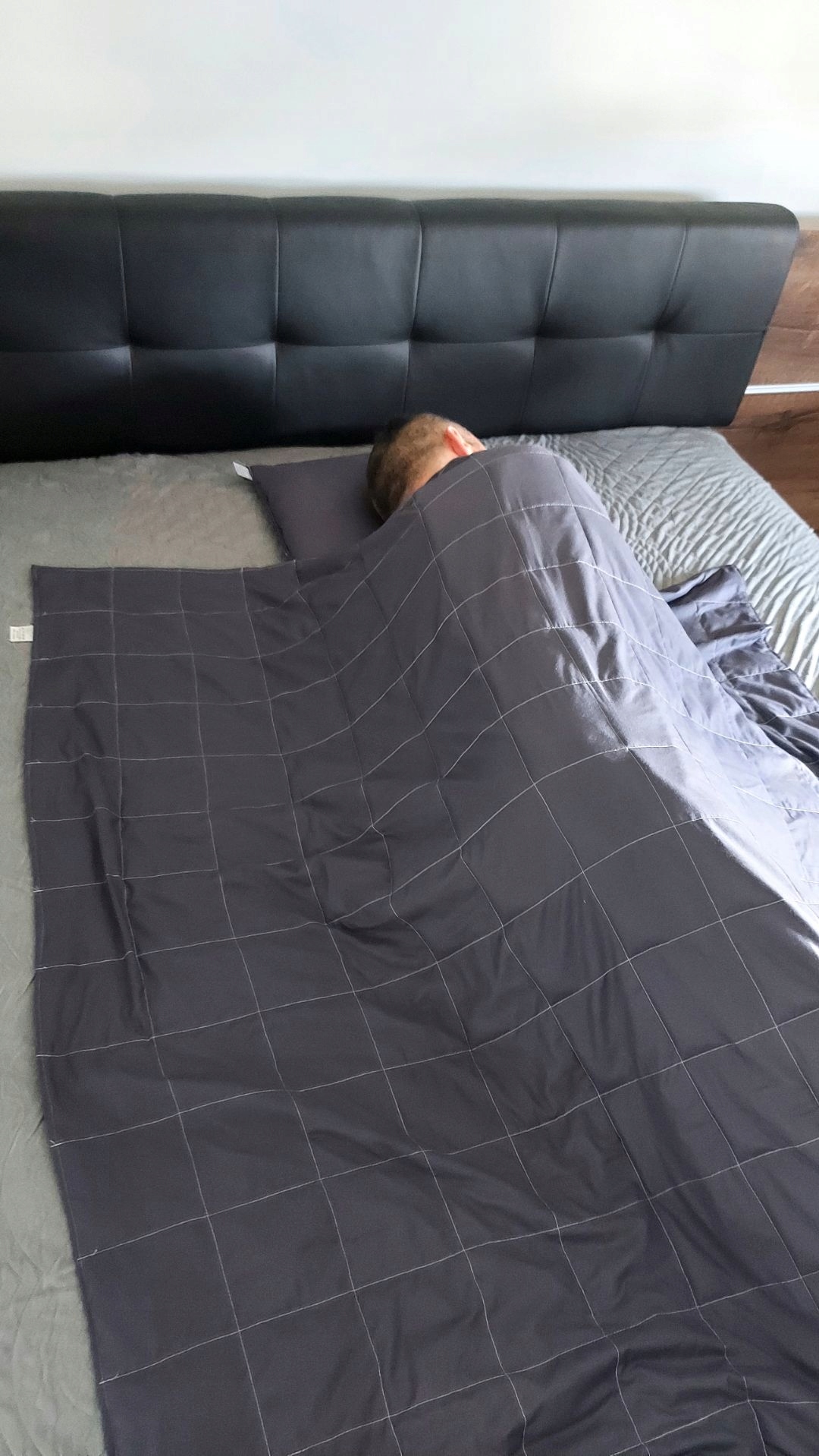 - Сенсорна ковдра також є безцінним елементом нічного відпочинку, вона допомагає у випадку проблем зі сном. Коли наші обов’язки починають перевантажувати нас, нам важко відволіктися від них. Професійні проблеми переносяться з роботи додому. Часто вони дають про себе знати ввечері, перед сном, заважаючи спокійно спати. Обтяжена ковдра заспокоює плутанину в голові, відганяє думки про проблеми та розслабляє.