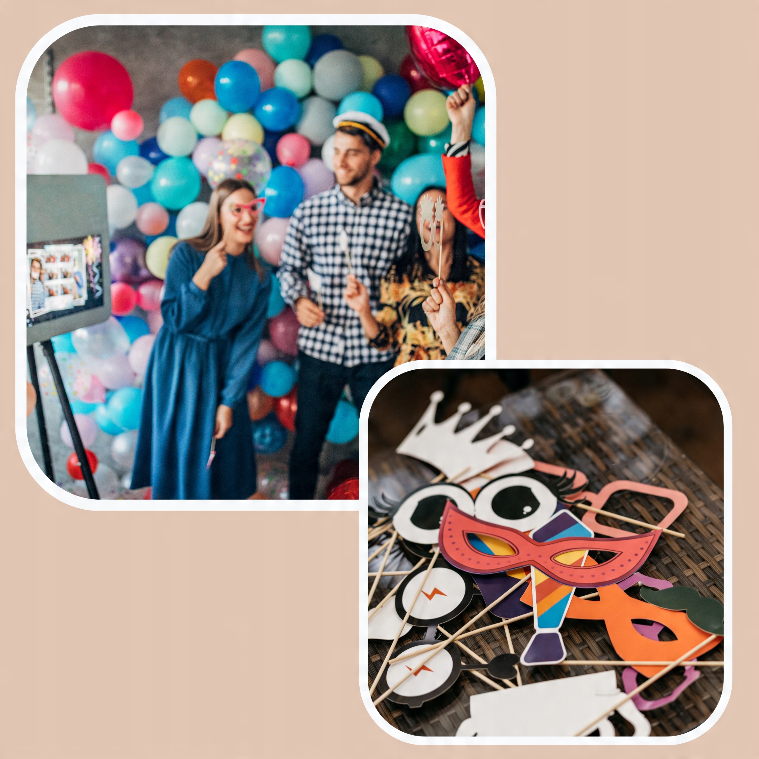 Реквізити для фотозони дозволяють ще більше свободи у створенні цікавих і смішних фотографій, а також дозволяють ще більше інтеграції та спільного задоволення учасників заходу.