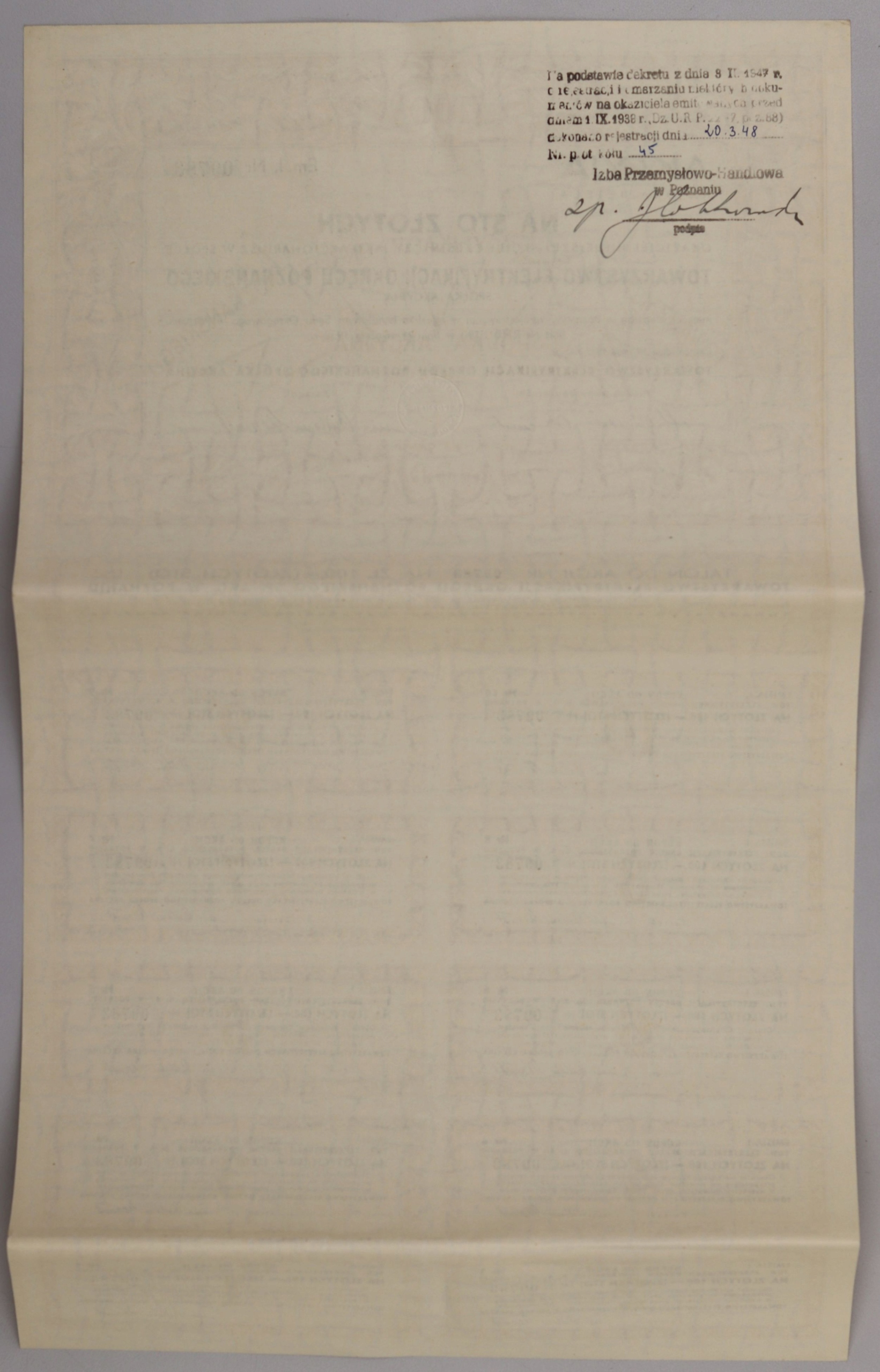 Заказывая «Akcja na 100 złotych Towarzystwa Elektryfikacji Okręgu Poznańskiego 1939» данное изделие из «цінні папери» вы можете быть уверены, что после оформления заказа, доставки в Украину, вы получите именно то, что заказывали, в оговоренные сроки и европейского качества.