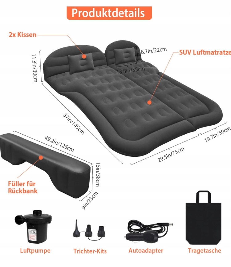 - Багатофункціональний матрац: Це туристичне ліжечко оснащене 6 індивідуальними подушками безпеки. Сумісний із позашляховиками, MPV, автомобілями седана, його можна використовувати вдома як ліжко, сновидіння автомобіля, туристичне ліжко, кемпінг, сумісний з більшістю моделей задніх автомобільних сидінь (седан, позашляховик, MPV тощо, ідеально підходить для всіх випадків (кемпінг у наметі, подорожі, пляж) - ваш надійний супутник подорожей.