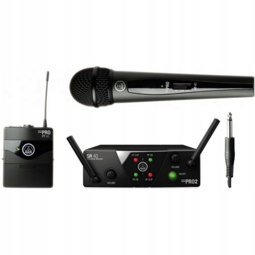 Подвійний вокально-інструментальний набір WMS 40 MINI складається з подвійного приймача SR 40 MINI Dual, ручного передавача HT 40 MINI, передавача для тіла PT 40 MINI та кабелю з’єднання інструменту. Інші мікрофони AKG також можна легко підключити до переносного передавача. Компактна двоканальна магнітола SR 40 MINI Dual має міцний металевий корпус.