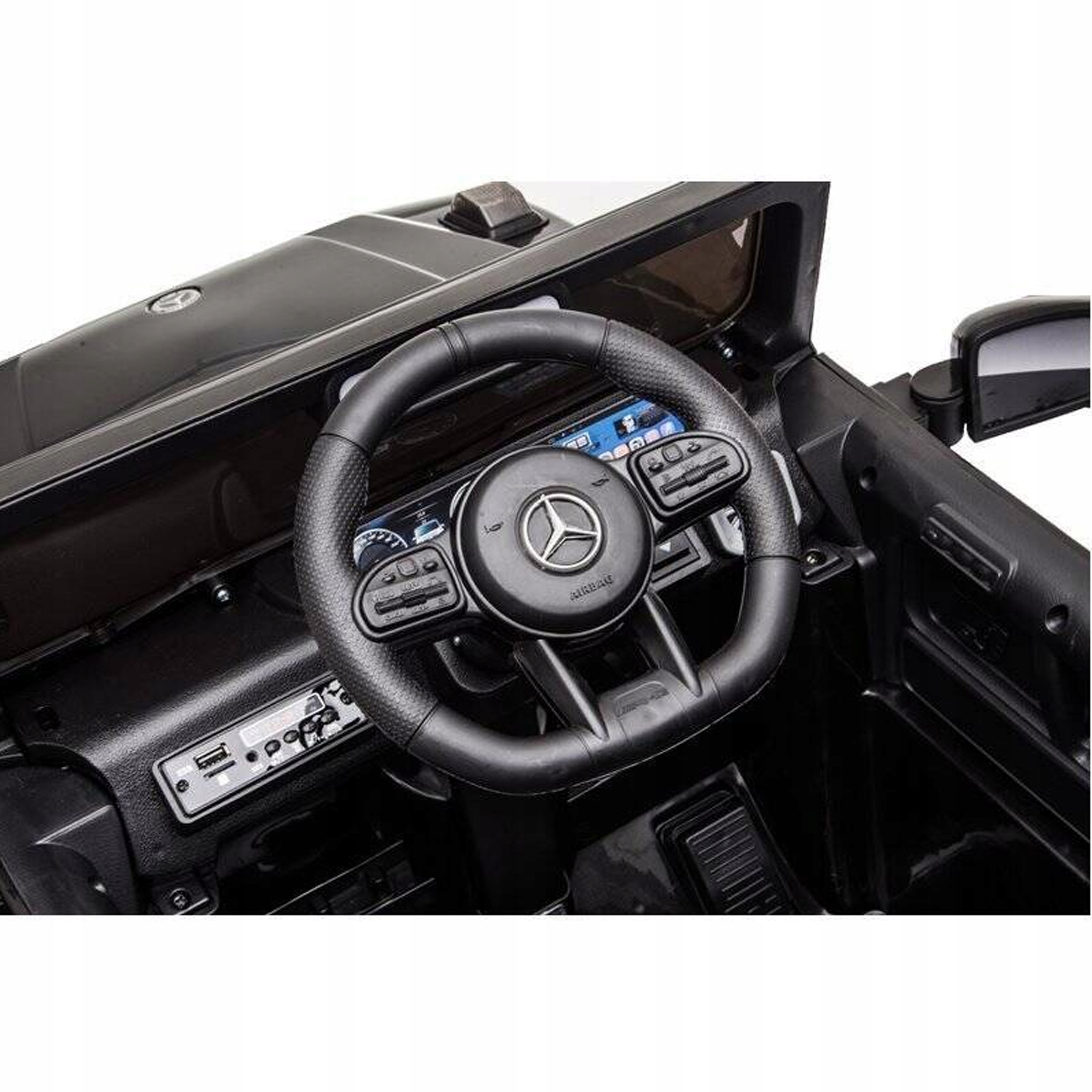 Електричний Mercedes G63 — це не лише автомобіль, повний стилю та деталей. Це також гарантія безпечних розваг завдяки ременям безпеки та піні EVA колеса. Функція повільного старту усуває раптові старти для плавного та контрольованого прискорення. Крім того, батьки можуть зберігати повний контроль завдяки пульту дистанційного керування, який дозволяє керувати автомобілем і змінювати швидкість руху.
