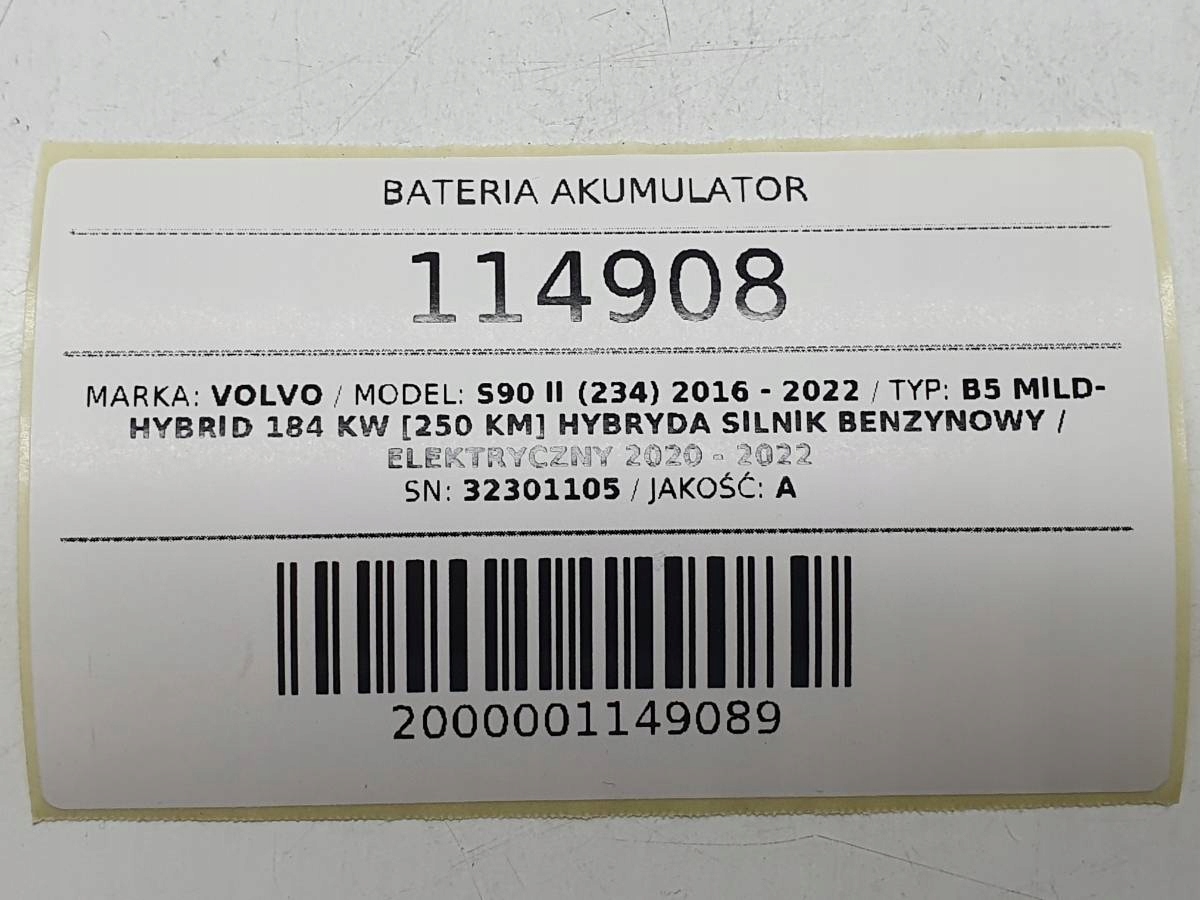 АККУМУЛЯТОР VOLVO S90 II B5 MILD HYBRID 32301105