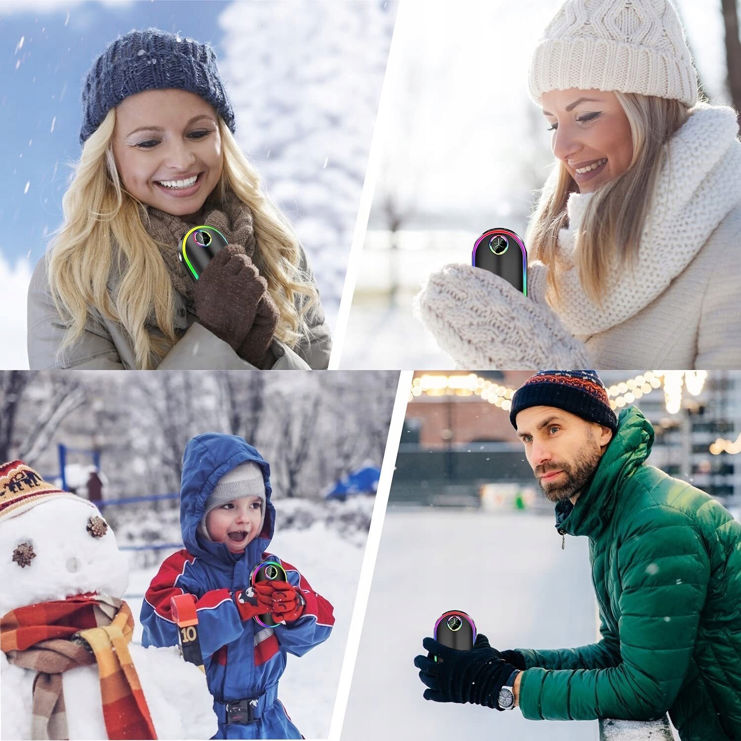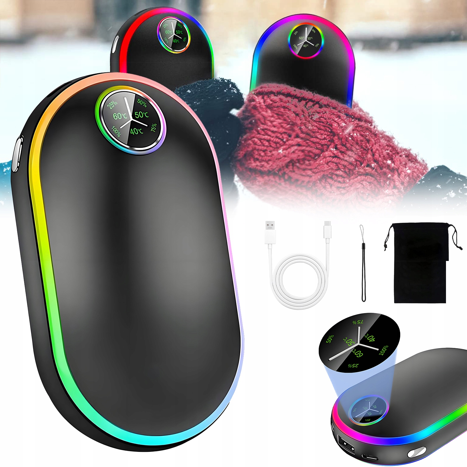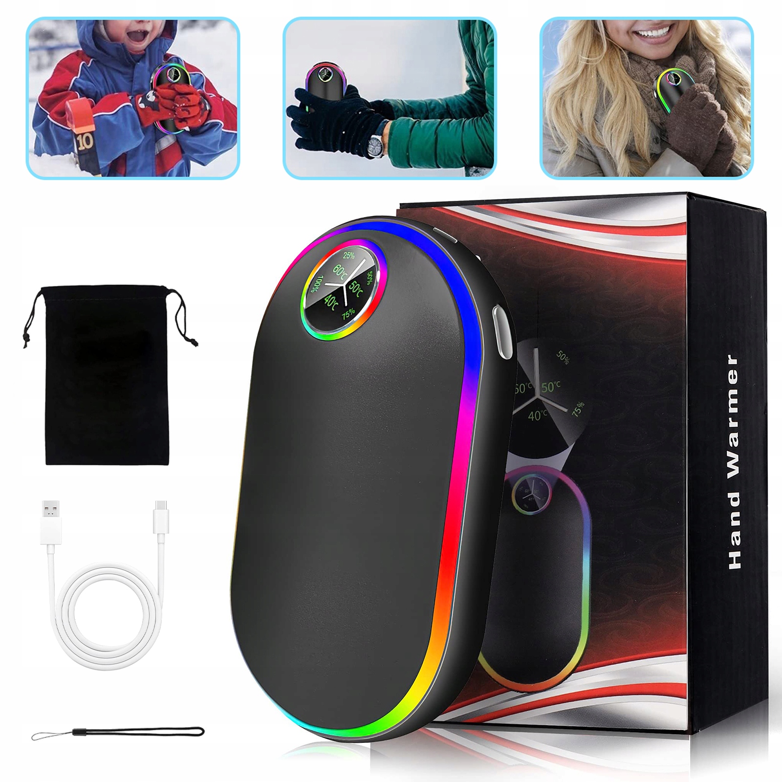 Інноваційна електрична люмінесцентна грілка для рук із регульованими 7-кольоровими дихальними лампами. Модна електрична грілка для рук. Підходить для чоловіків і жінок.