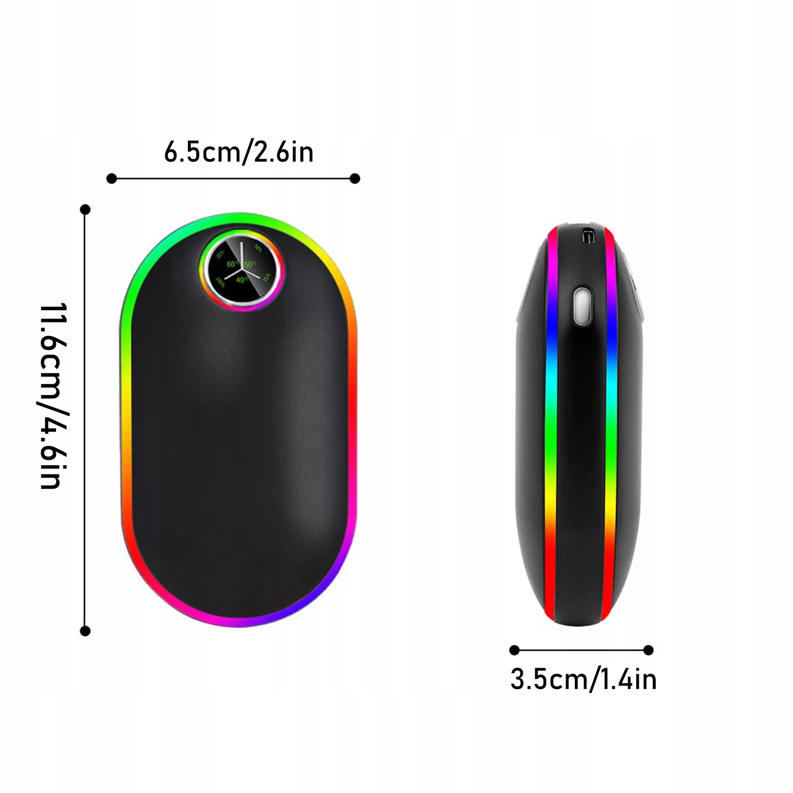 【Цифровий світлодіодний дисплей】 Ця грілка для рук має світлодіодний дисплей, який показує температуру та рівень заряду батареї. Виготовлений із високотехнологічного алюмінію та ABS-пластику з екологічно чистим полімерним акумулятором, він стійкий до ударів, опіків, ковзання та вибуху.