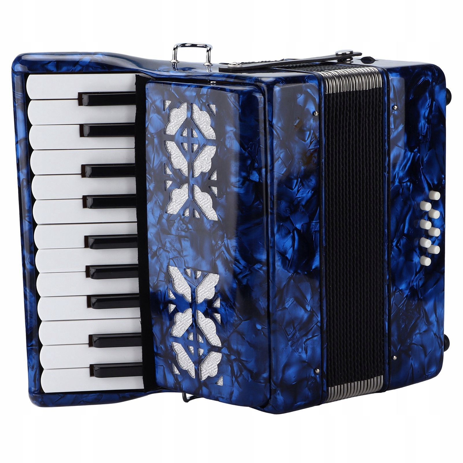 1. 22-клавішний акордеон з 8-клавішною басовою клавіатурою з чистою якістю звуку, клавіші з текстурою чорного піаніно