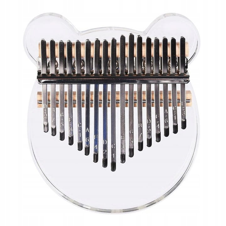 Стильна акрилова калімба з високоякісних матеріалів, ретельно підібраних і точно підігнаних один до одного - завдяки цьому інструмент має гарний, чистий звук і чудову акустику. Вібраційні пластини (клавіші) виготовлені з блискучого металу та налаштовані на заводі за міжнародним стандартом налаштування C. Грати на калімбі дуже легко навчитися – щоб відтворювати звуки, ми просто натискаємо клавіші великими пальцями.