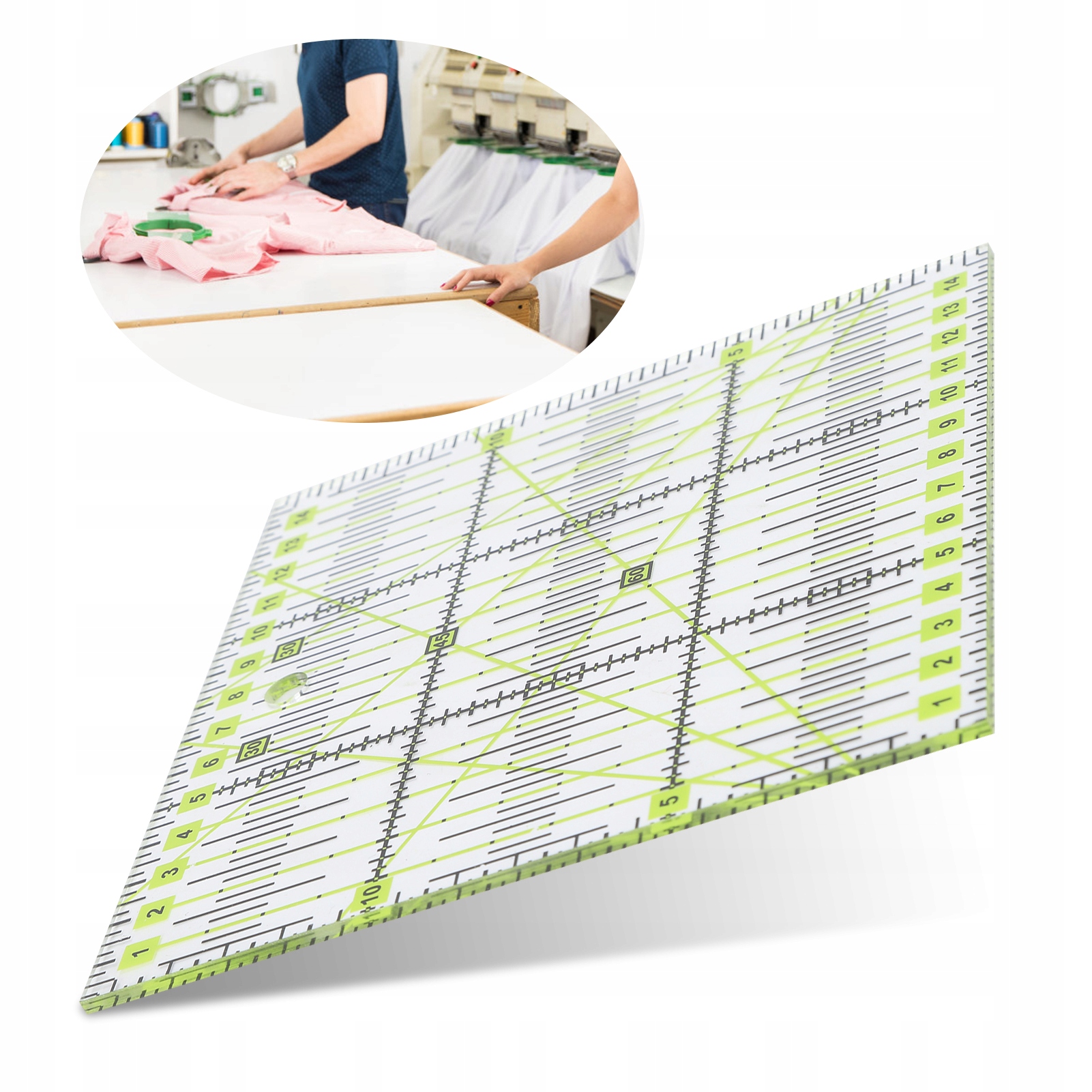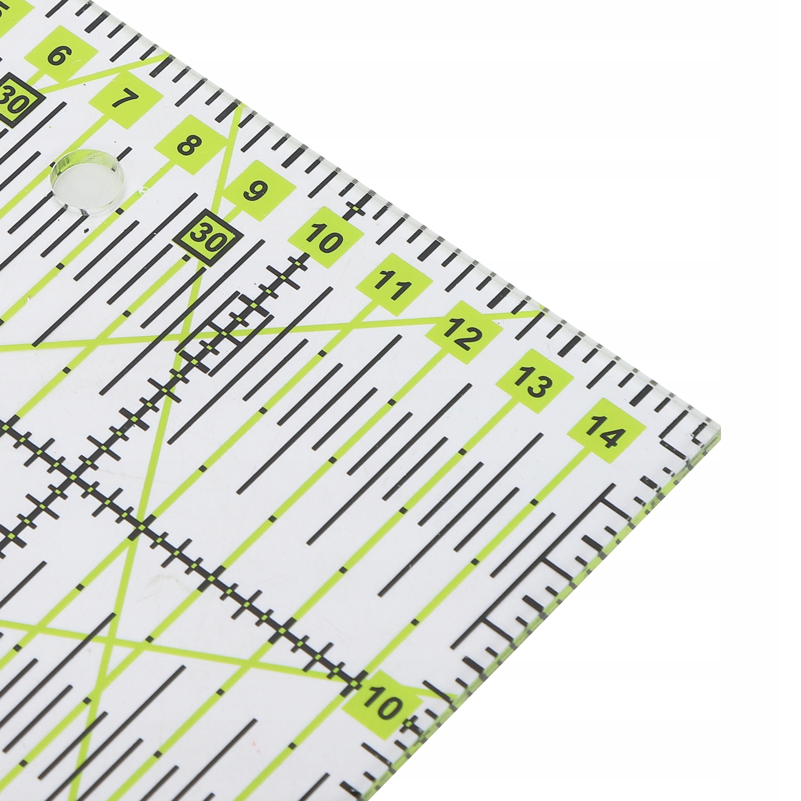 1. Контрастні чорні та світло-зелені лінії сітки дозволяють легко та точно розрізати тканину. 2. Ви можете легко бачити, що вимірюєте або вирізаєте як на світлих, так і на темних тканинах. 3. Розміри, вертикальний і горизонтальний масштаб дозволяють різати лівою або правою рукою. 4. Оснащений отвором для підвішування, куди ви можете легко сховати лінійку, щоб ваш верстак був чистим. 5. Ця лінійка для квілтингу — важливий інструмент для вас, незалежно від того, чи ви стьобаєте, шиєте чи майструєте.
