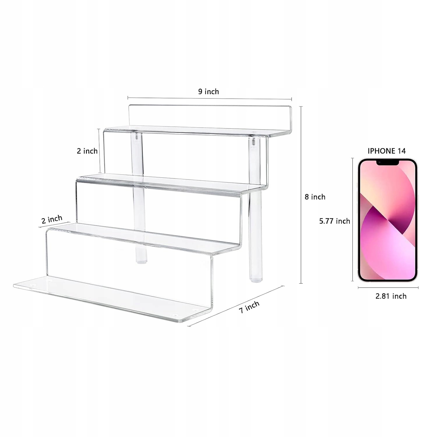 4-рівневий дисплей з прозорого акрилу. Підходить для презентацій, гаманців, лаків для нігтів, парфумів, а також ідеально підходить для прикраси столу, наприклад, кекси чи фрукти!
