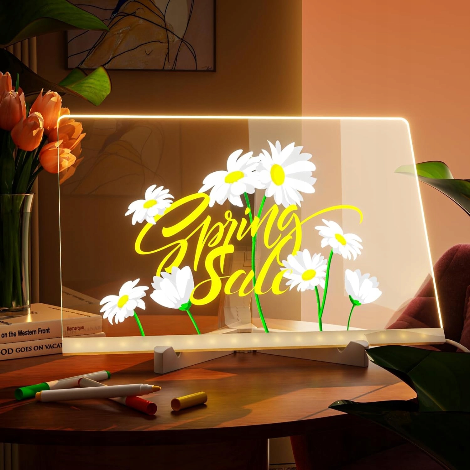 Акрилова світлодіодна дошка з 7 кольорами підсвічування є ідеальним інструментом для запису ідей, планування та створення творчих малюнків. Ідеально підходить для дому, офісу, кафе або школи - він поєднує в собі функціональність і сучасний вигляд. �✨
