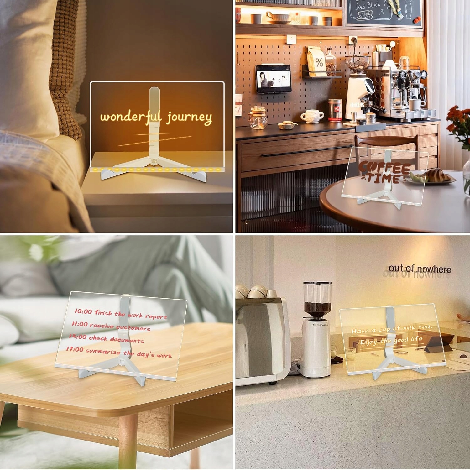 Акрилова дошка з підсвічуванням є практичним інструментом для створення повідомлень, нотаток або світлових декорацій. Ідеально підходить для готелів, ресторанів, офісів і домашніх інтер'єрів, привертаючи увагу своїм елегантним освітленням. 🌟