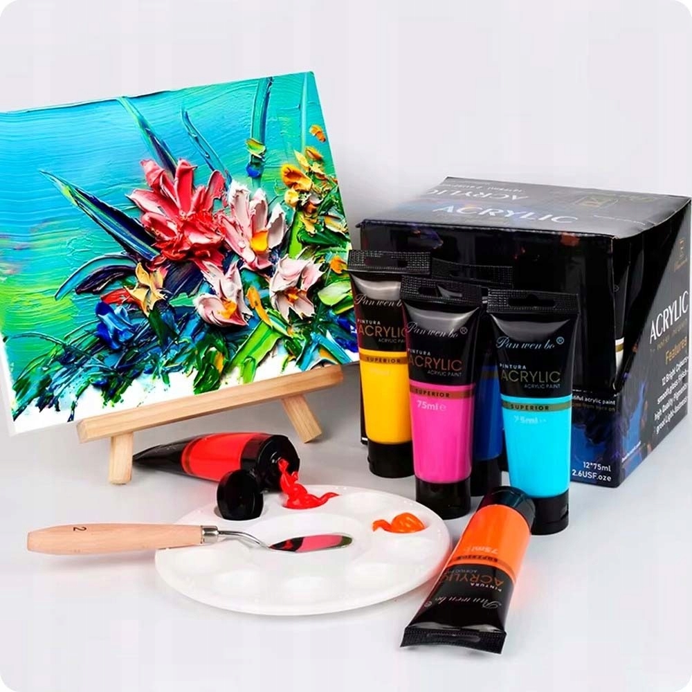 ☝️ АКРИЛОВІ ФАРБИ НАБІР АКРИЛОВИХ ФАРБ ВЕЛИКІ ТУБИ 12x75 мл МИСТЕЦТВО ЖИВОПИСУ