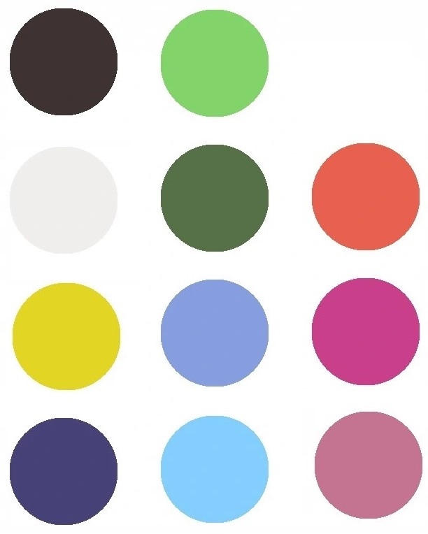 - Колір: синій, зелений, бежевий, оливковий, бірюзовий, жовтий, білий, червоний, чорний, бензиновий, рожевий