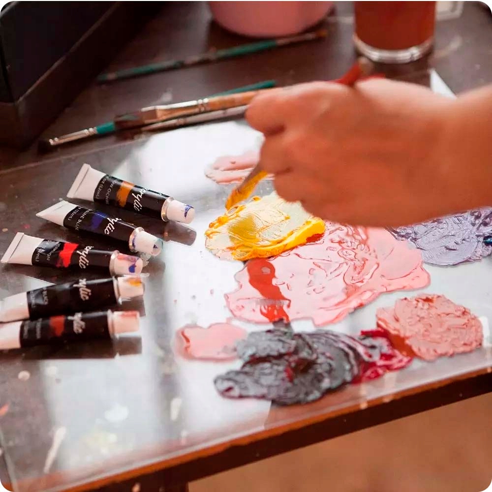 ✍️ Кольори фарби: Ультрамариновий синій, Кобальтовий синій, Фталоціанін, Багряно-червоний, Скарлет, Кіноварь, Помаранчевий, Тілесний відтінок, Жовта охра, Середньо-жовтий, Лимонно-жовтий, Титановий білий, Ламповий чорний, Сірий, Необроблена умбра, Палена умбра, Палена сієна, сира сієна, фіолетовий, зелений хукера, вірідіан, соковитий зелений, смарагдово-зелений, блакитний синій