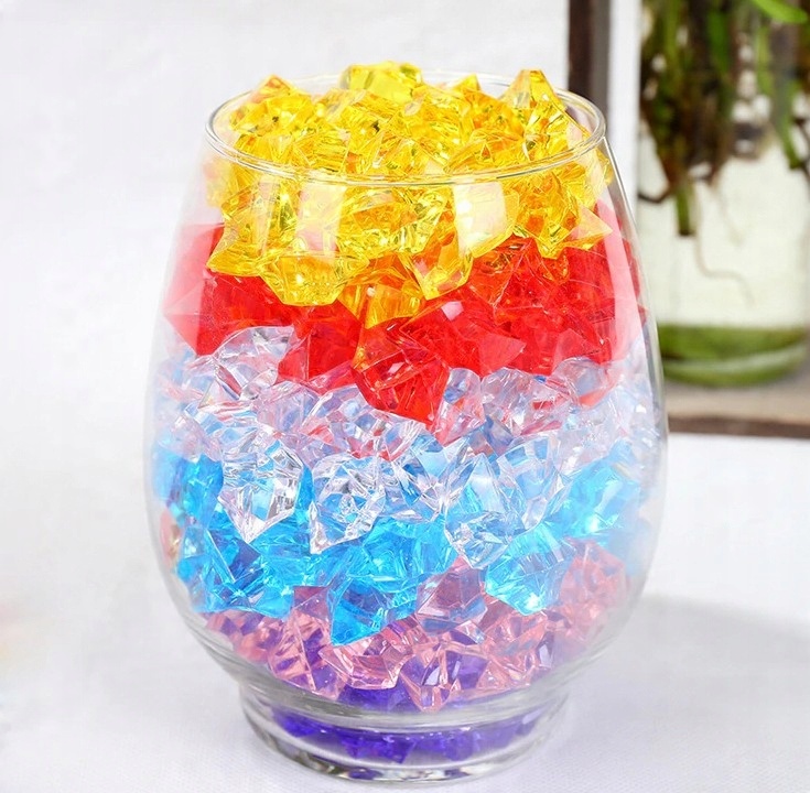 Дрібні та блискучі камінці ідеально підходять для прикраси столів, акваріумів, скляних ємностей та для створення квіткових композицій, наприклад, для особливих заходів.