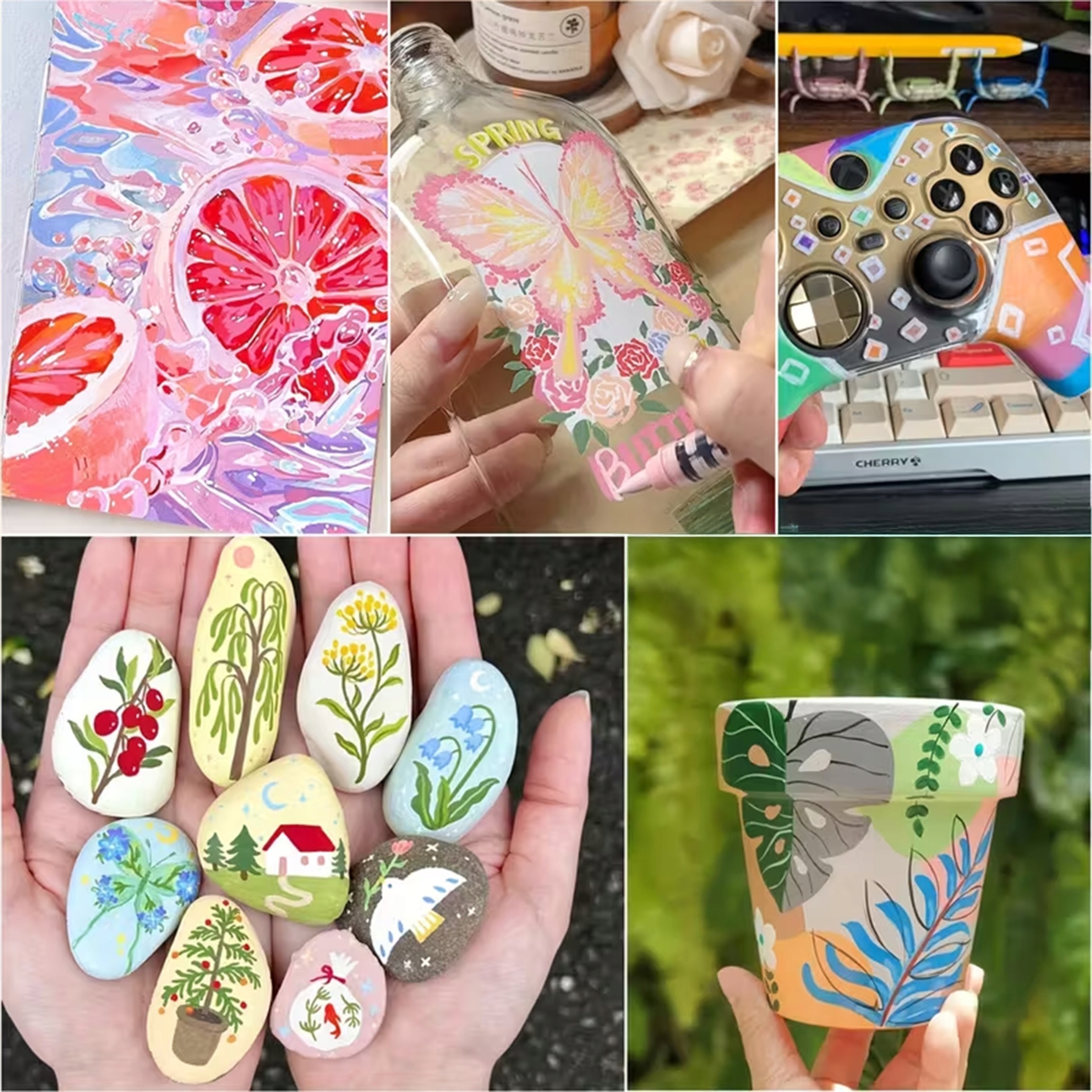 - Відкрийте для себе 36 високоякісних акрилових маркерів у наборі, які поєднують зручність маркера зі стійкістю та інтенсивністю акрилової фарби. Завдяки кінчику пензлика вони ідеально підходять для художників, любителів, творців рукоділля та всіх, хто хоче створювати професійні та вражаючі декоративні проекти.