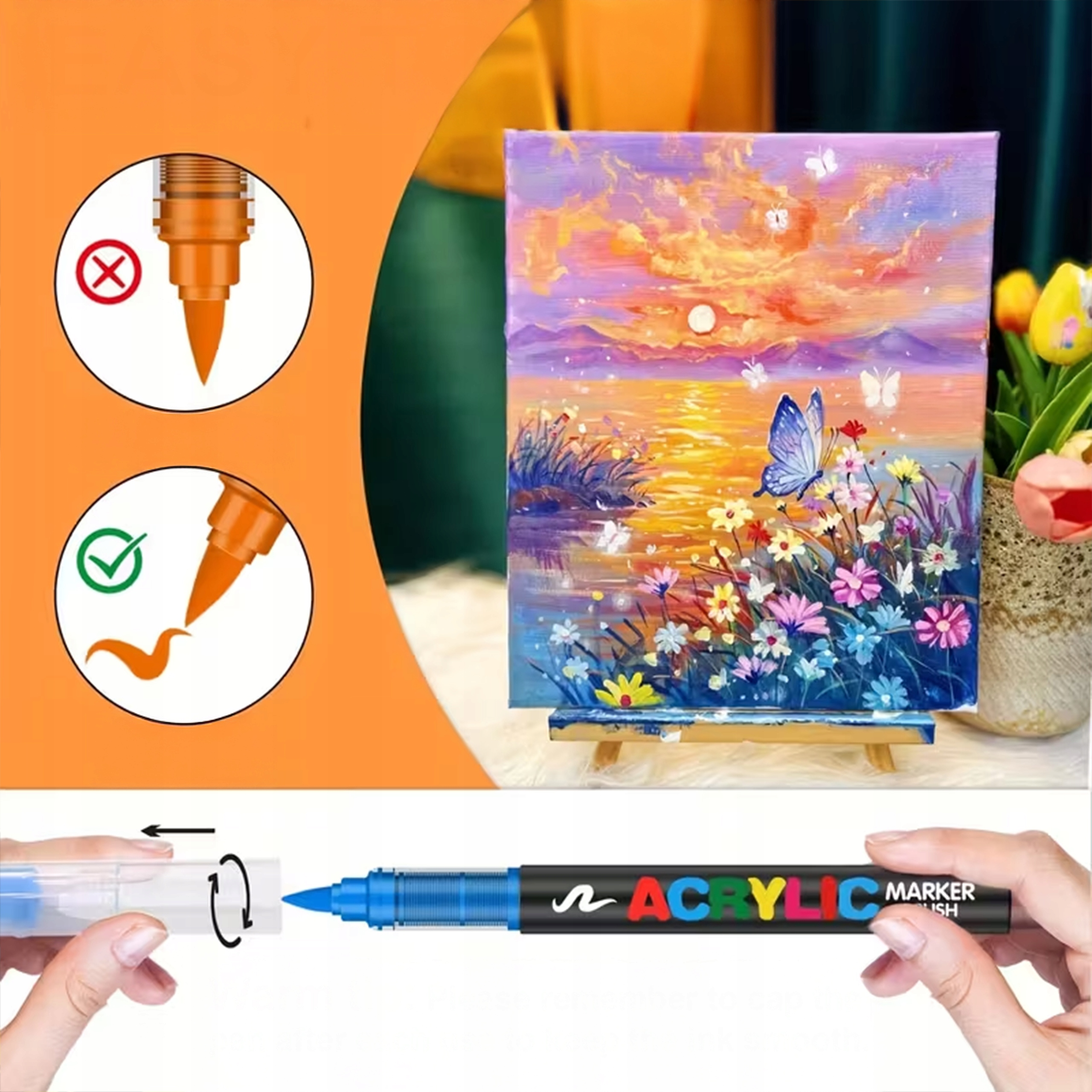 Акрилові фломастери з наконечником пензля – водостійкі художні фломастери для творчості та саморобки