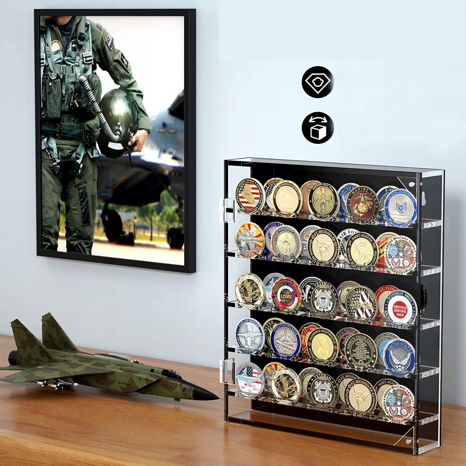 - 🌈 - 【АКРИЛОВИЙ ДИСПЛЕЙ ДЛЯ МОНЕТ】: Військовий дисплей для монет Challenge виготовлено з акрилу, має дуже високу якість і сучасний дизайн, який підходить до будь-якого стилю декору.