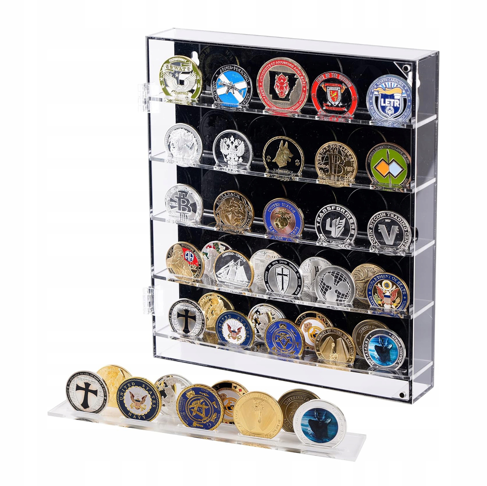 - 🌈 - 【Дизайн магнітних дверцят】: магнітні дверцята призначені для кращого захисту ваших предметів колекціонування та монет від пилу та пошкоджень, а також зручніші для зберігання та видалення монет. Захистіть свої цінні предмети колекціонування. Покажіть свою честь з гордістю. !