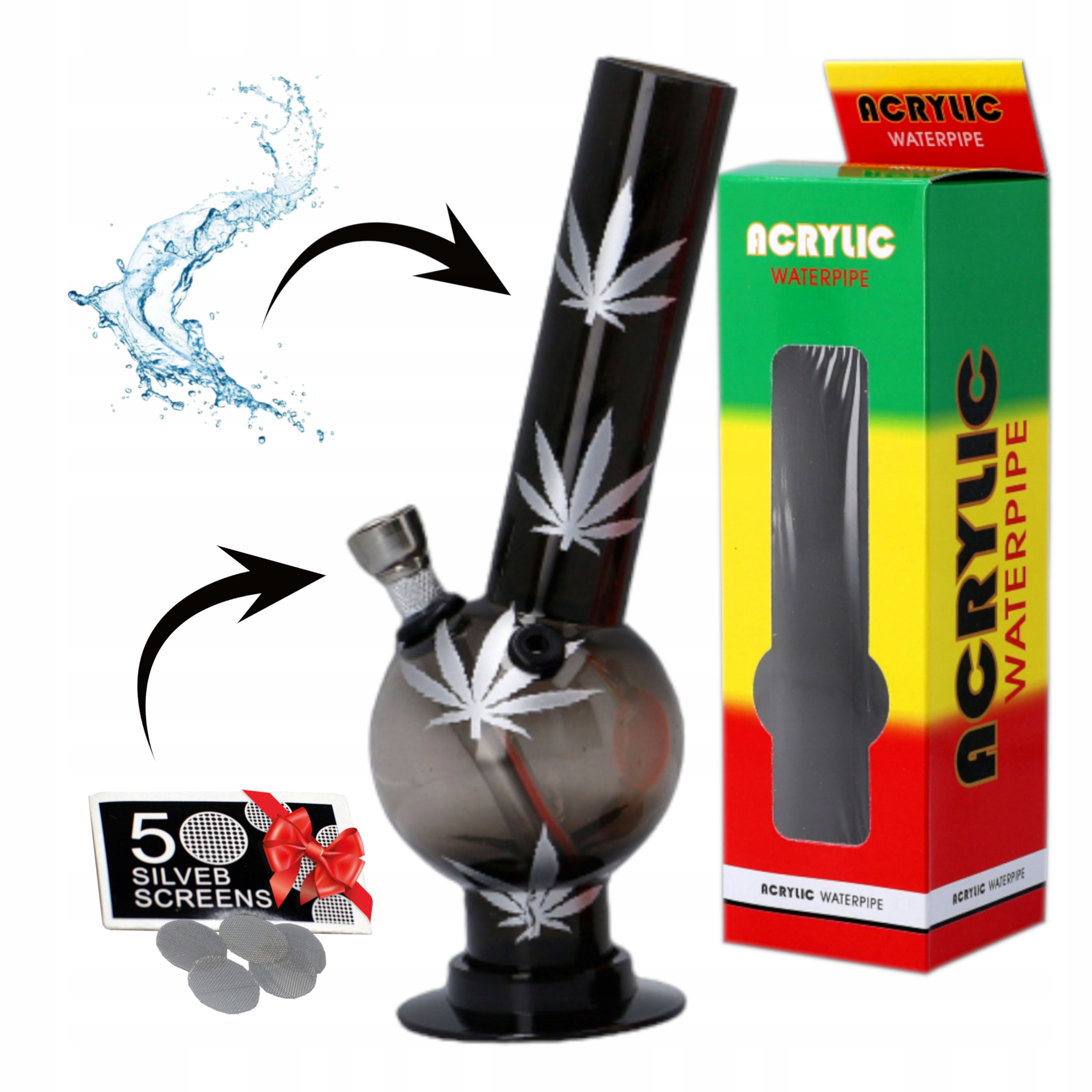 BONGO виготовлено з високоякісного безбарвного акрилурізноманітних кольорів, прикрашених листям марихуани.