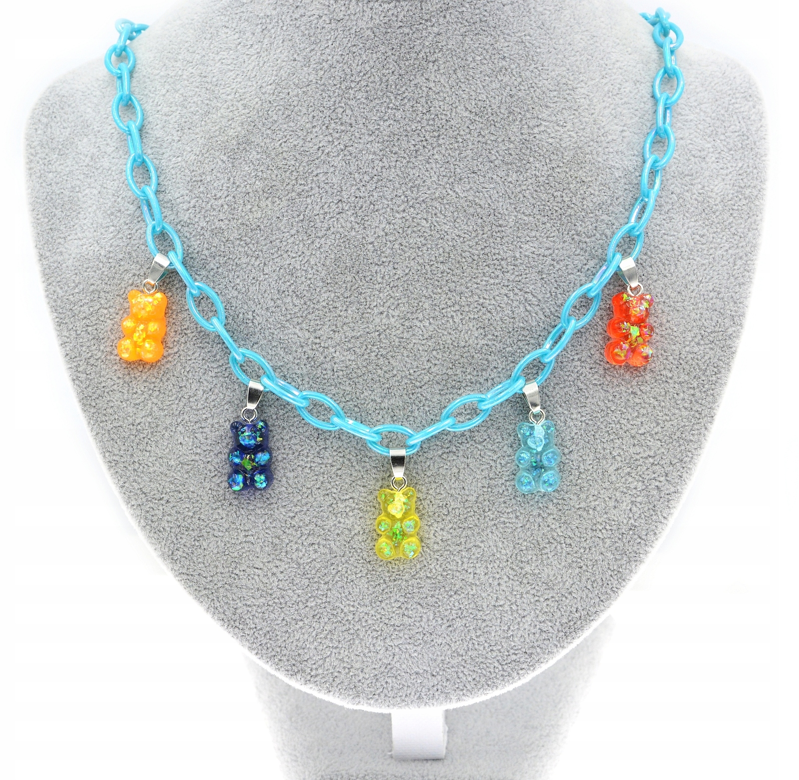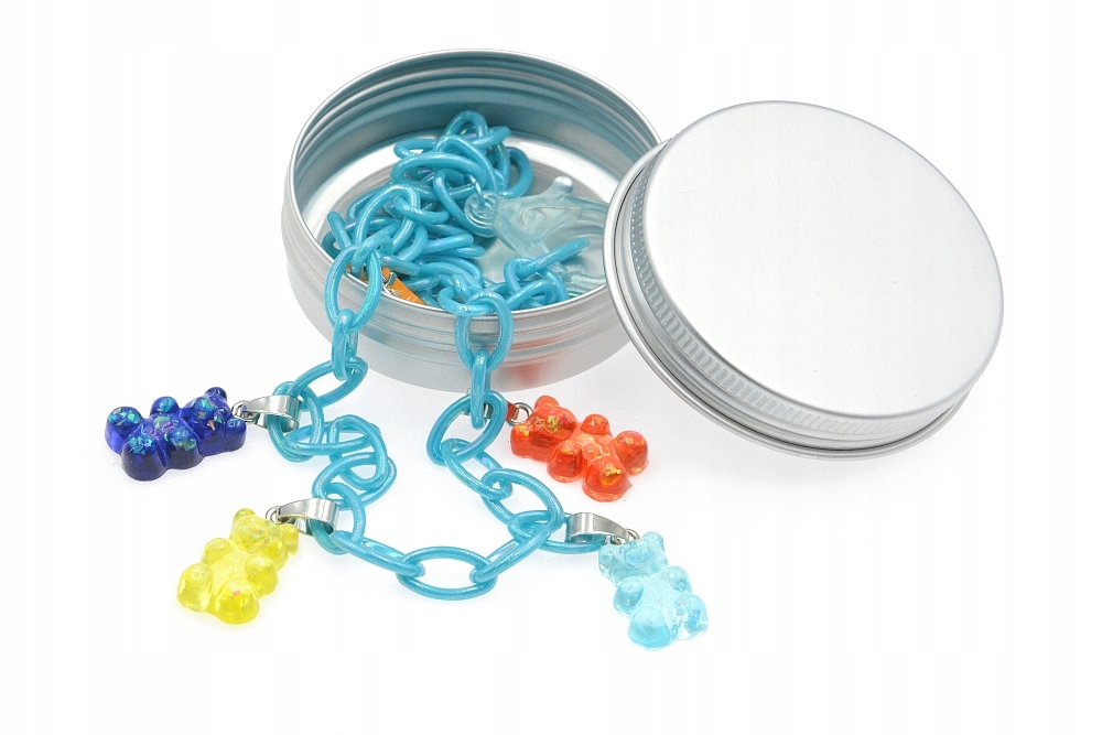 Акриловий ланцюжок, ВЕДМЕДІ, 5 желе Haribo, 50 см, блискучий блакитний акрил