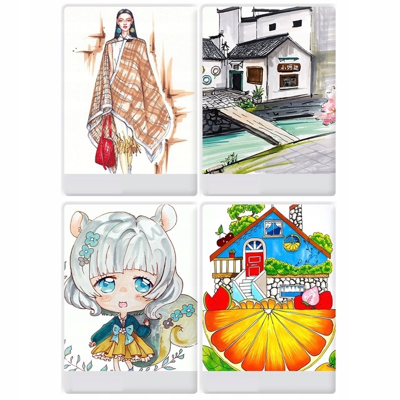 ⭐ фарба, що міститься в маркері, може бути змішана, розведена або нанесена шар на шар, залежно від потреби. Поки фарба мокра, кольори можна змішати безпосередньо на землі. Після висихання ви можете застосувати інший шар безпосередньо, без ризику змішування кольору. Завдяки цьому ви можете безпечно нанести легкі кольори на темні кольори. Якщо ви хочете згасати колір або отримати градієнт - просто розведіть вологу фарбу і нанесіть її. Таким чином, маркування дозволяє отримати ефект, подібний до акрилової фарби.