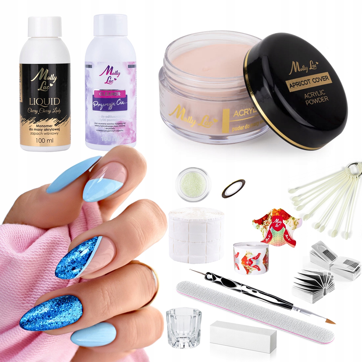 Акрилові пудри MollyLac ідеальні, за текстурою нагадують розсипчасту пудру. Крім того, вони стійкі до кристалізації, не жовтіють під впливом сонячних променів, а також їх додатковою перевагою є простота обробки.