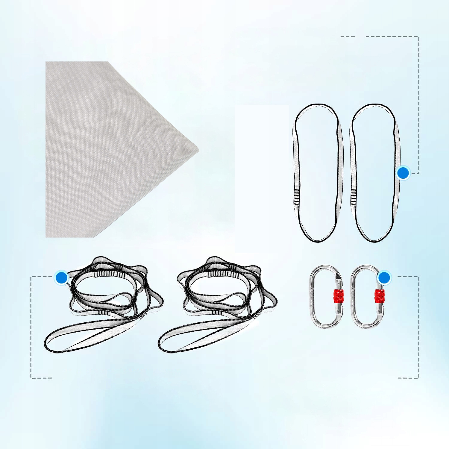 - Міцні матеріали додають гамаку для йоги міцність, довговічність і високу вантажопідйомність. Повний набір включає необхідне обладнання, щоб зробити підвішування вітерцем для всіх.