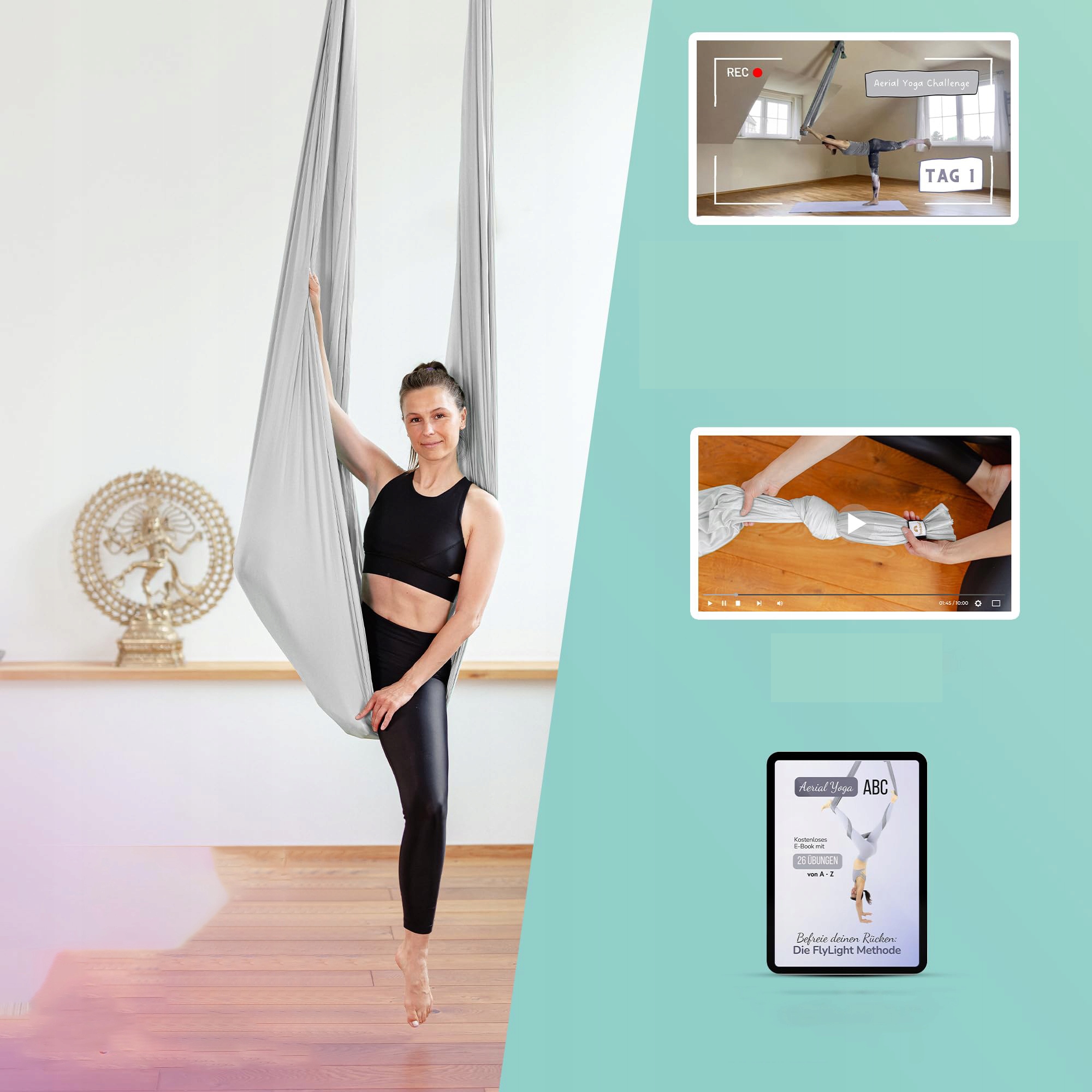 РАДІСТЬ РУХУ: Відчуйте себе нестримним і розслабленим під час вправ із нашим набором для йоги на повітрі. Цей повітряний гамак для йоги, здатний витримати вагу 500 кг, забезпечує свободу як під час інтенсивних вправ, так і під час легких погойдувань йоги