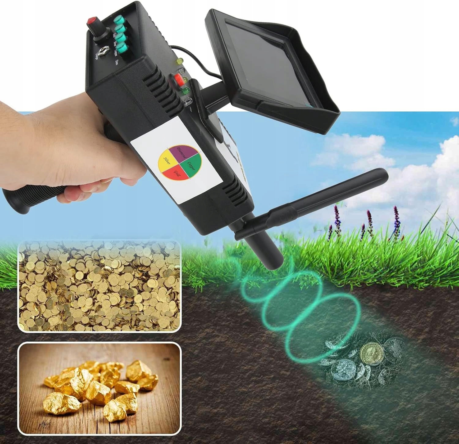 - [точне розташування] детектори можуть ідентифікувати конкретні типи металів за допомогою частотних модифікаторів, визначають, де точно поховані та розташовані об'єкти, вони мають довгі системи пошуку та точні системи виявлення місця. Під час перевірки безпеки, археологічні казначейські розвідки та пошук.
