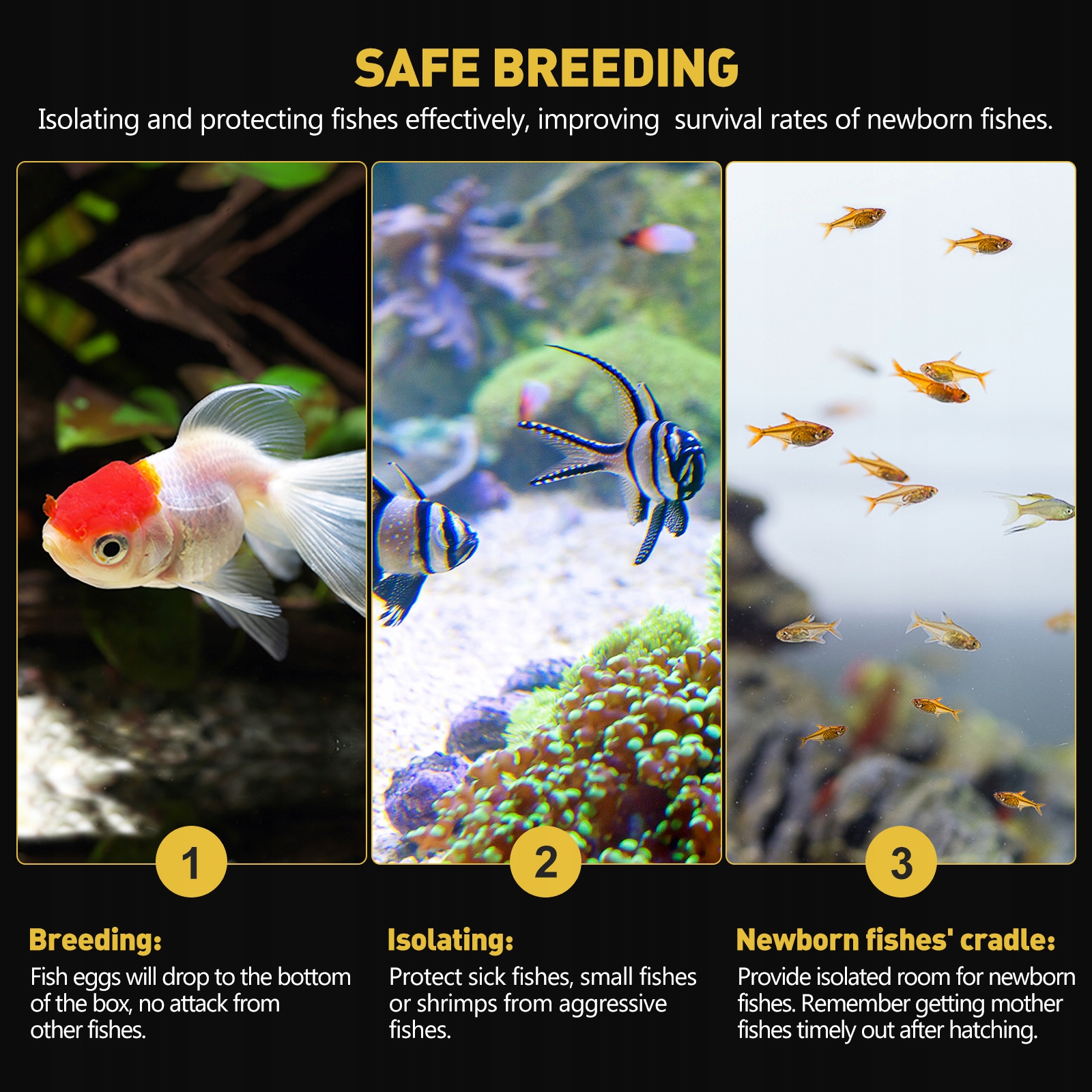 ✅ten Продукт виготовлений з акрилу без будь -якого бар'єру, що дозволяє спостерігати. Унікальна плаваюча та прозора акрилова кришка, призначена для запобігання виїзду з ізоляційної кімнати для захисту риби новонароджених. Завдяки цьому танку ви можете запобігти рибним нападом для дорослих, покращити виживання молодих риб.